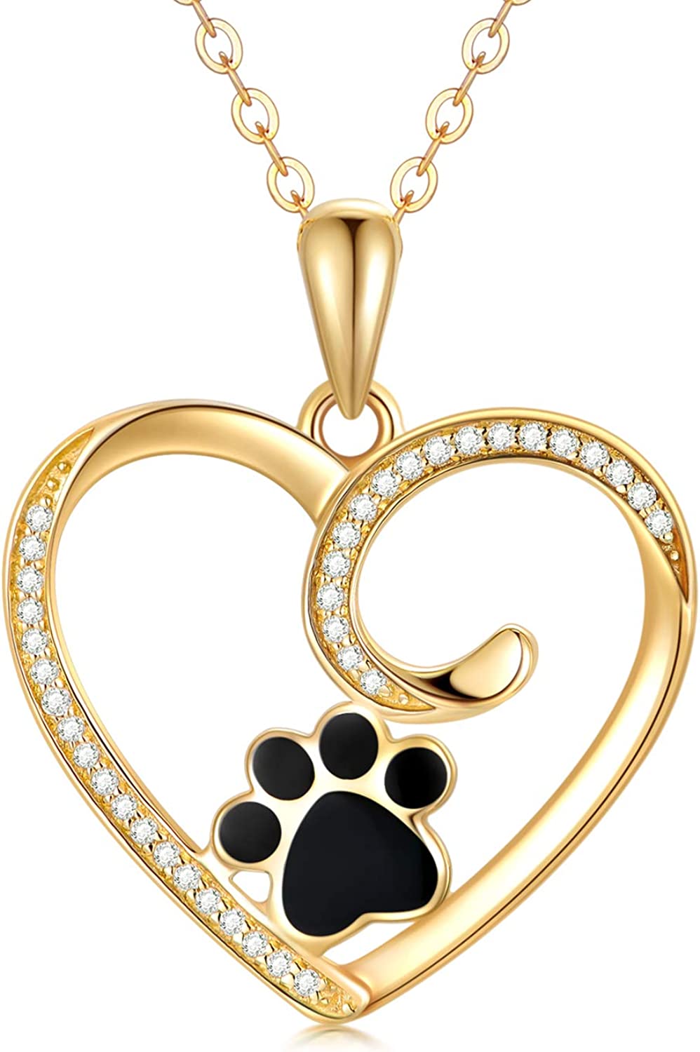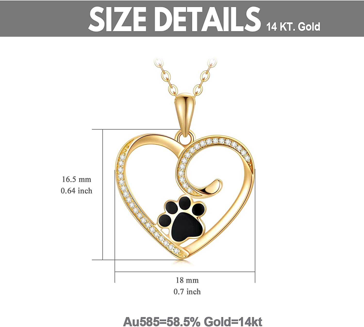 【Design】Black paw love heart pendant decorated with many bright created moissanite stone, this gold love jewelry is a gift for animal lover.
