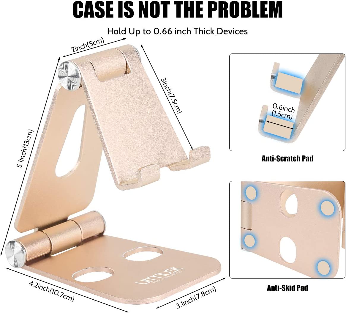 • ?【STURDY & PROTECTIVE】: The cell phone stand is made of high quality premium aluminum, it stays firmly in place, hold your phone steadily, no worry any wobble at all. The rubber pads can protect your phone from any scratching and sliding.
