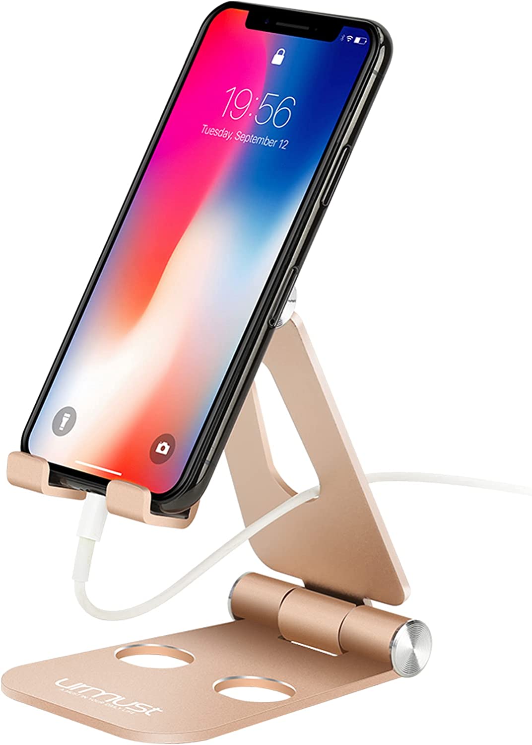 • ?【ADJUSTABLE & PORTABLE】: The phone holder is fully collapsible, Easy Carry. It can be easily adjusted to ideal position, free your hands, which is a good desk accessories while watching video, playing games, making phone call, viewing recipes, using Facetime.