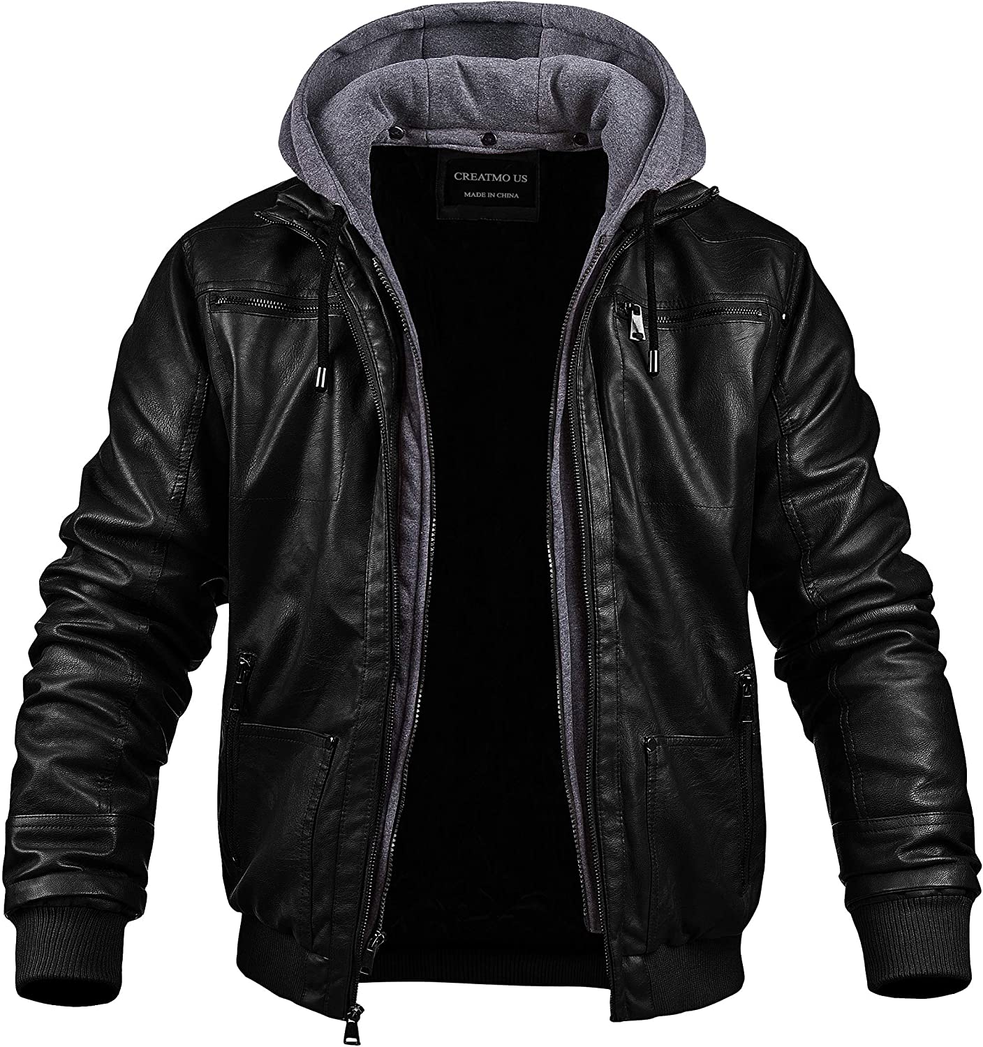▶ 2 style design--Leather coat with removable hooded is design for different looks between stylish hooded riding jacket and casual stand collar winter jacket.