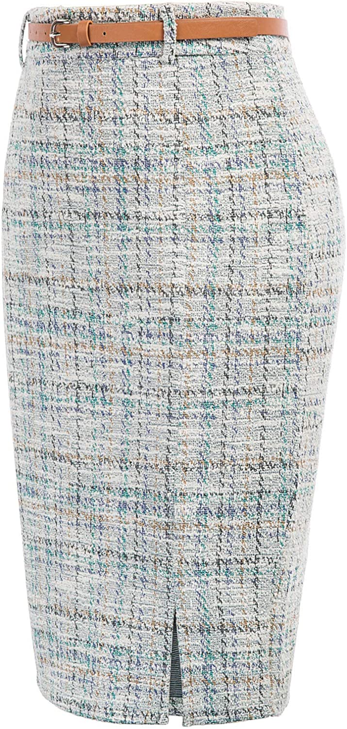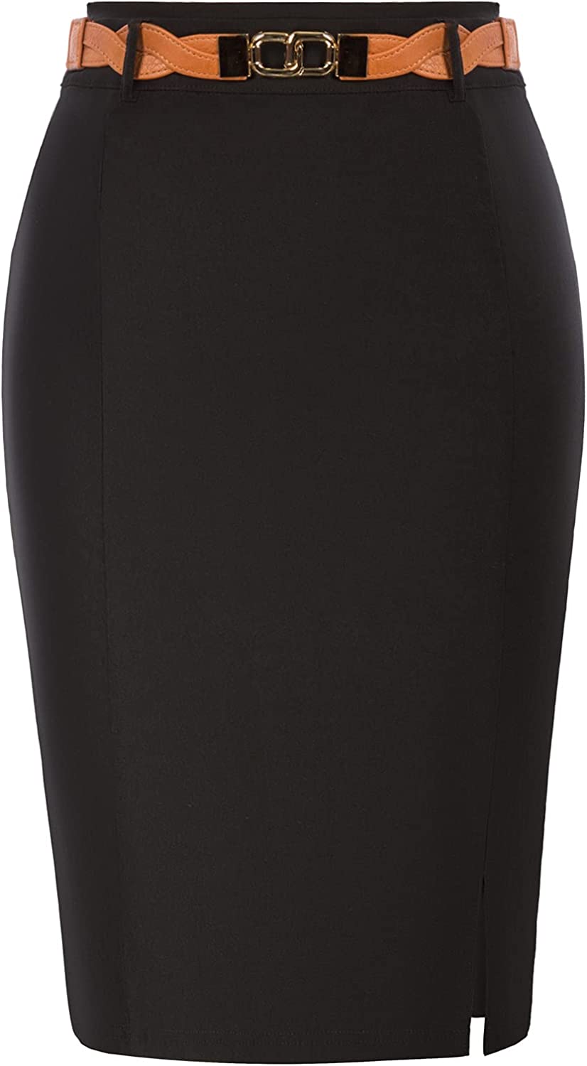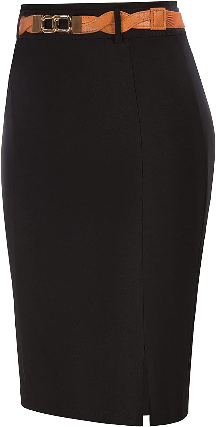 Kate Kasin Women's Bodycon Pencil Skirt with Belt Solid Color Hip-Wrapped