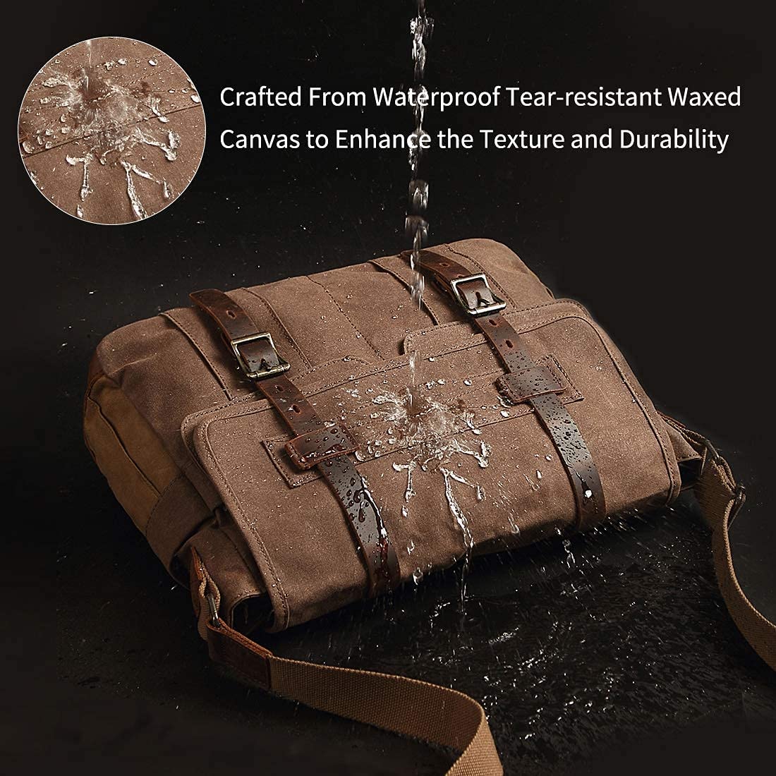 - WATERPROOF & STURDY: The mens messenger bag is made of waterproof rugged waxed canvas and superior crazy horse cowhide leather, trimmed with tough hardware, which offers a excellent durability. Disordered wrinkles on surface create a vintage and wild looking.