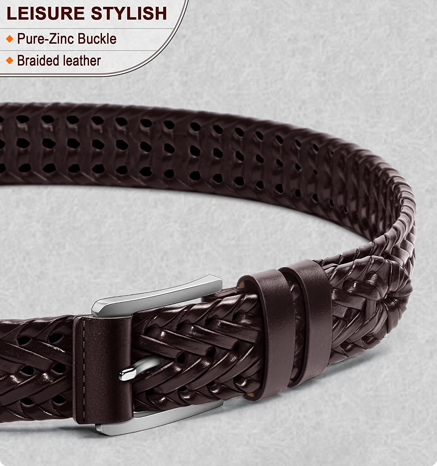 - Woven Braided Belt of Genuine Leather,Unisex for Men or Women,Width 1 3/8";