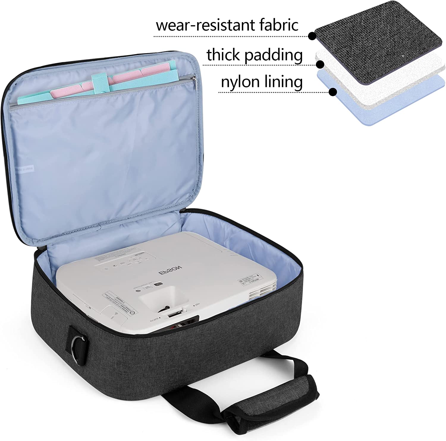PROTECTIVE: Made of heavy-duty nylon. Thick padding sandwiched between layers of material, which helps keep your projector and accessories in good condition.
