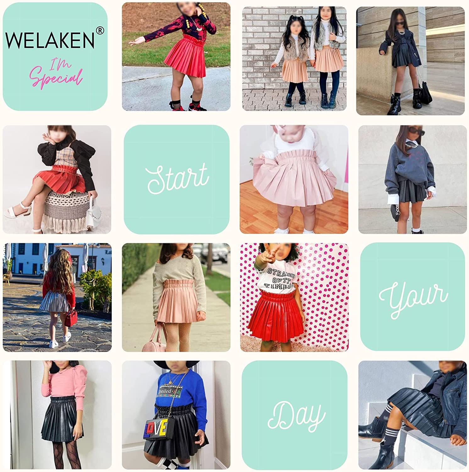 • FEATURES: Elastic waist PU leather skirt, middle- length, neat folds. WELAKEN Girl's PU skirt will give you and your little one a perfect street look and makes you more outstanding in the crowd.