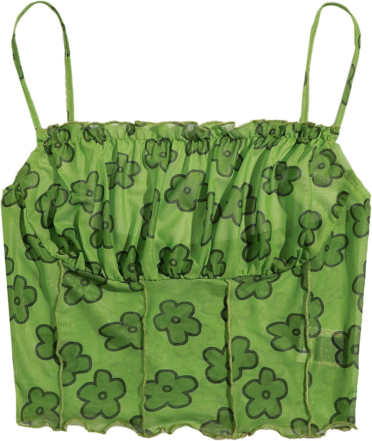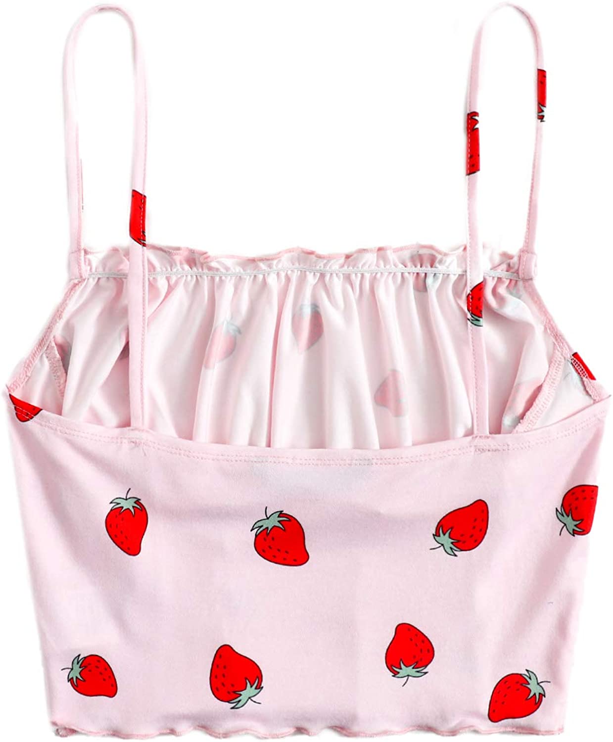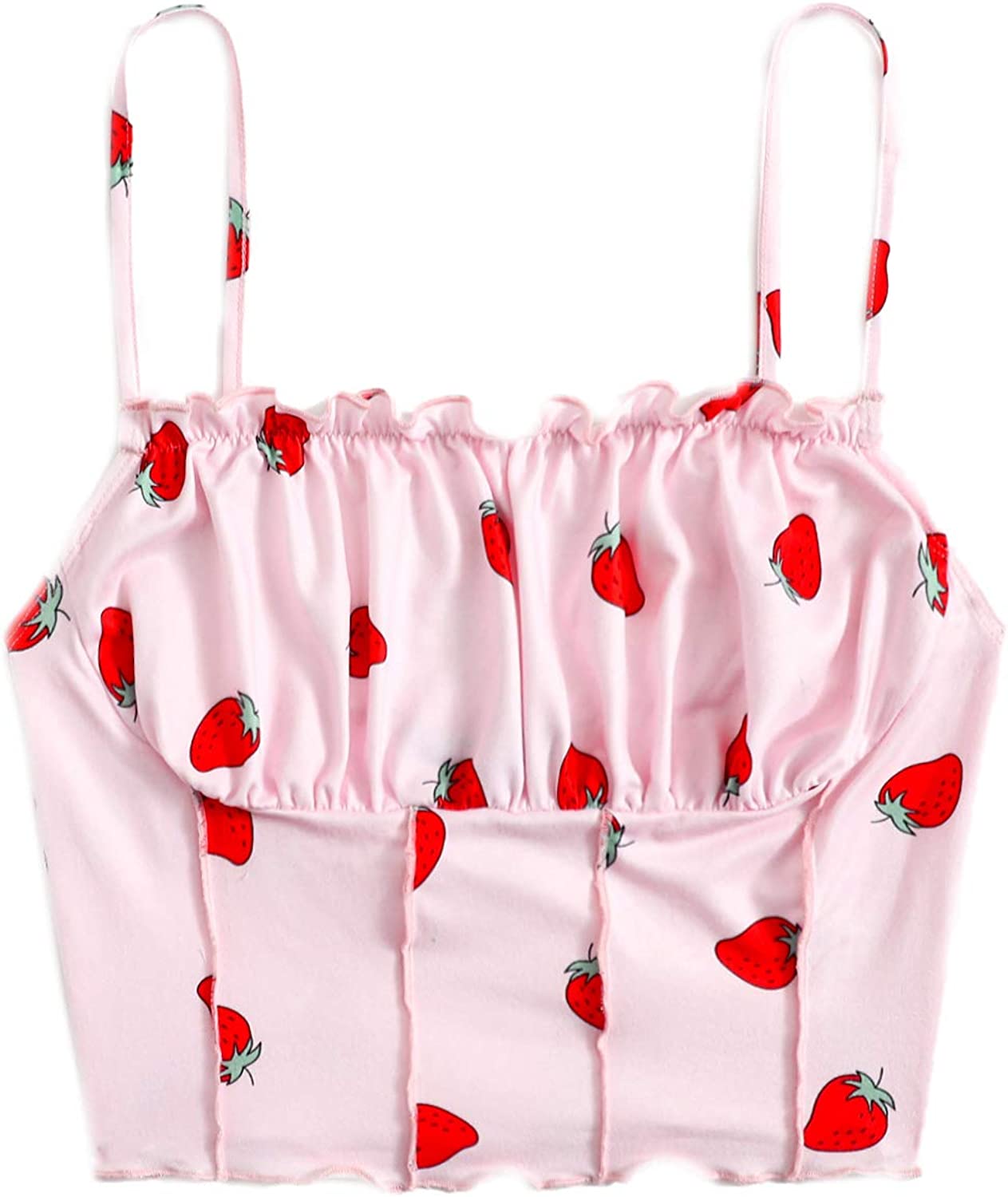 SweatyRocks Women's Ruched Frill Trim Spaghetti Strap Crop Cami Tank Tops Camisole