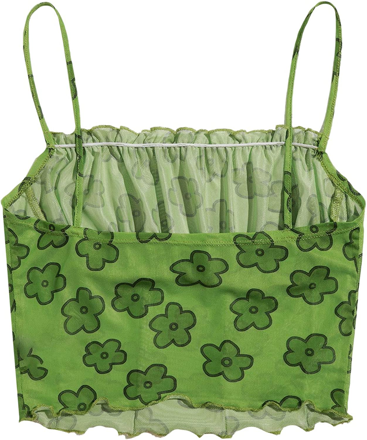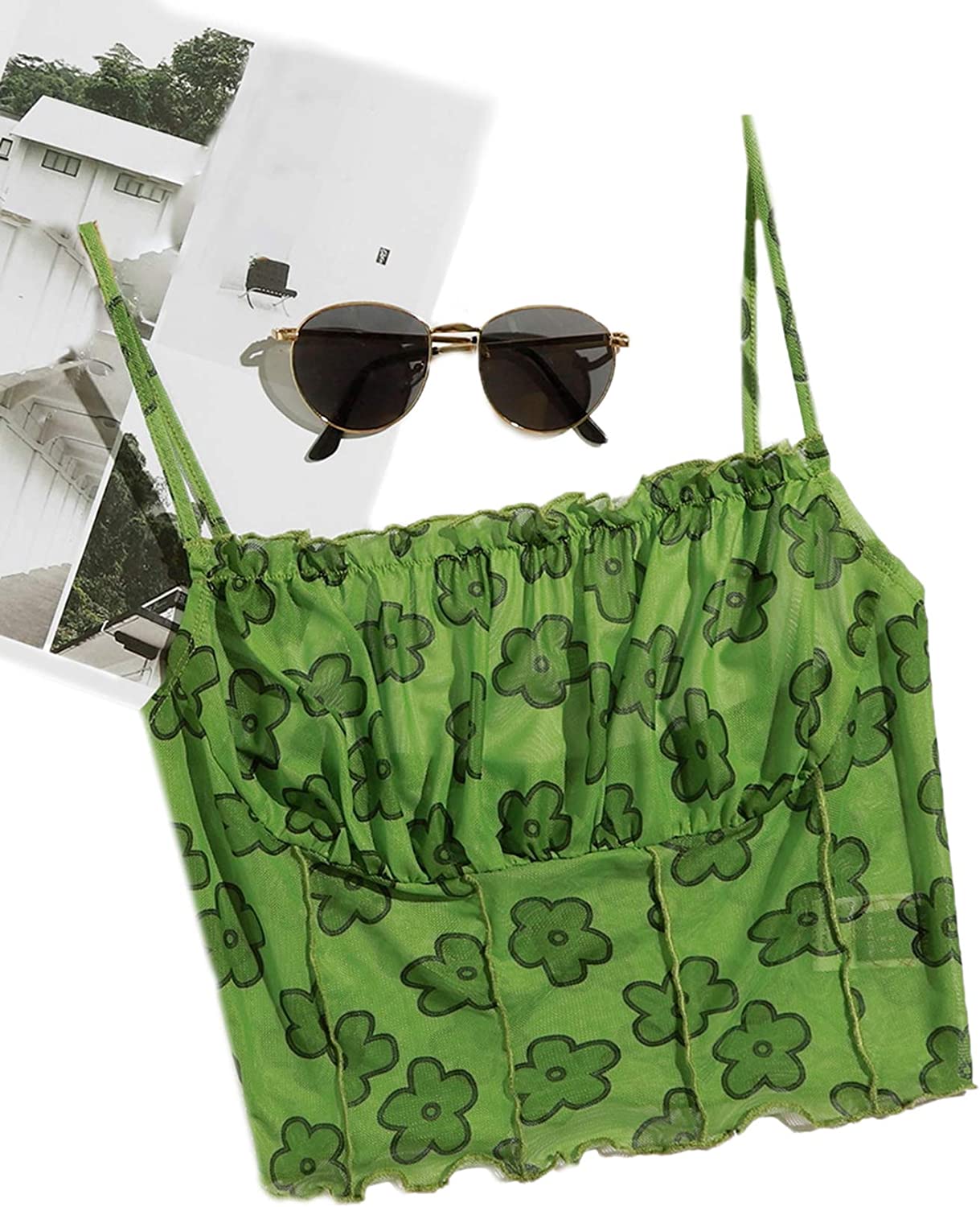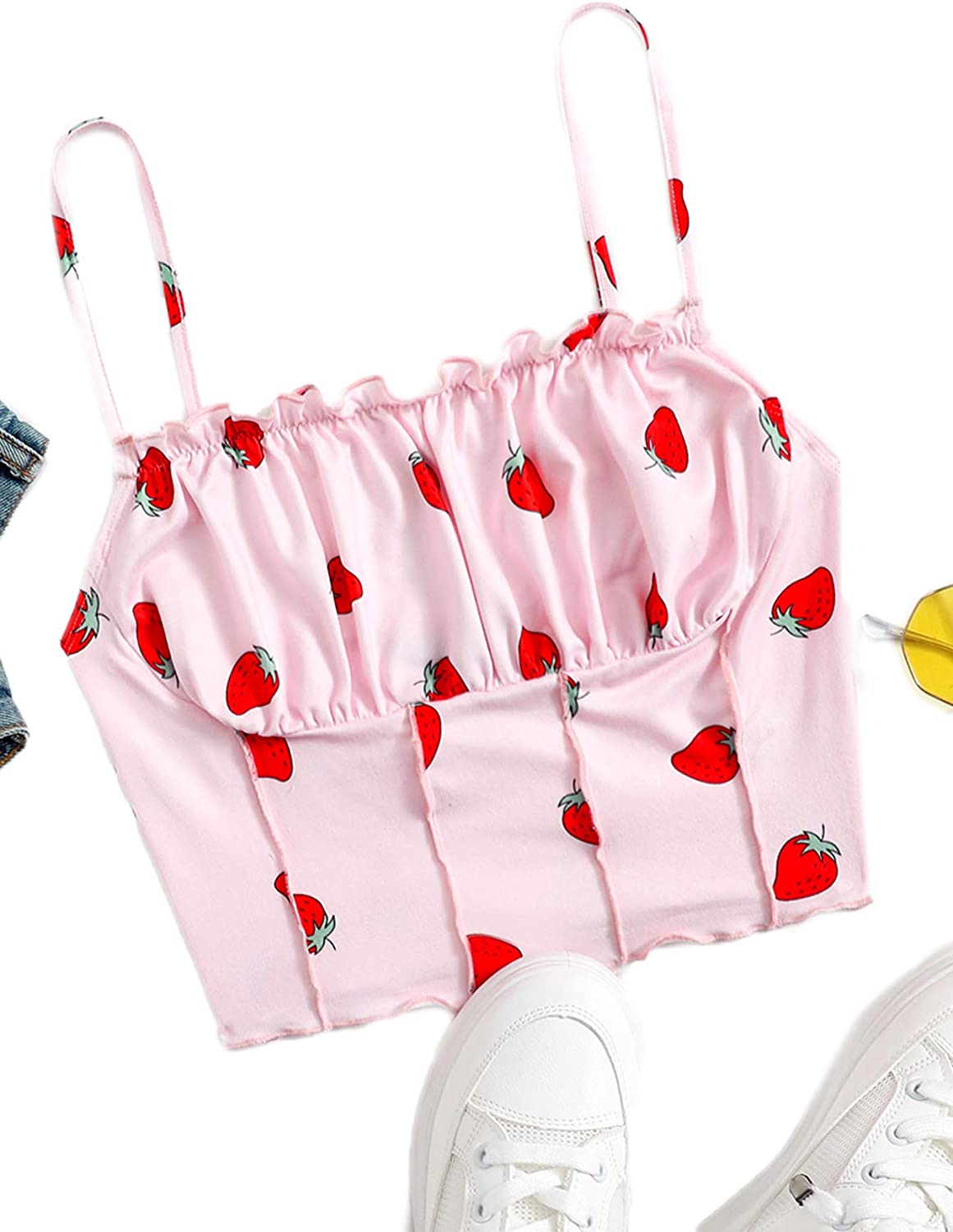 SweatyRocks Women's Ruched Frill Trim Spaghetti Strap Crop Cami Tank Tops Camisole