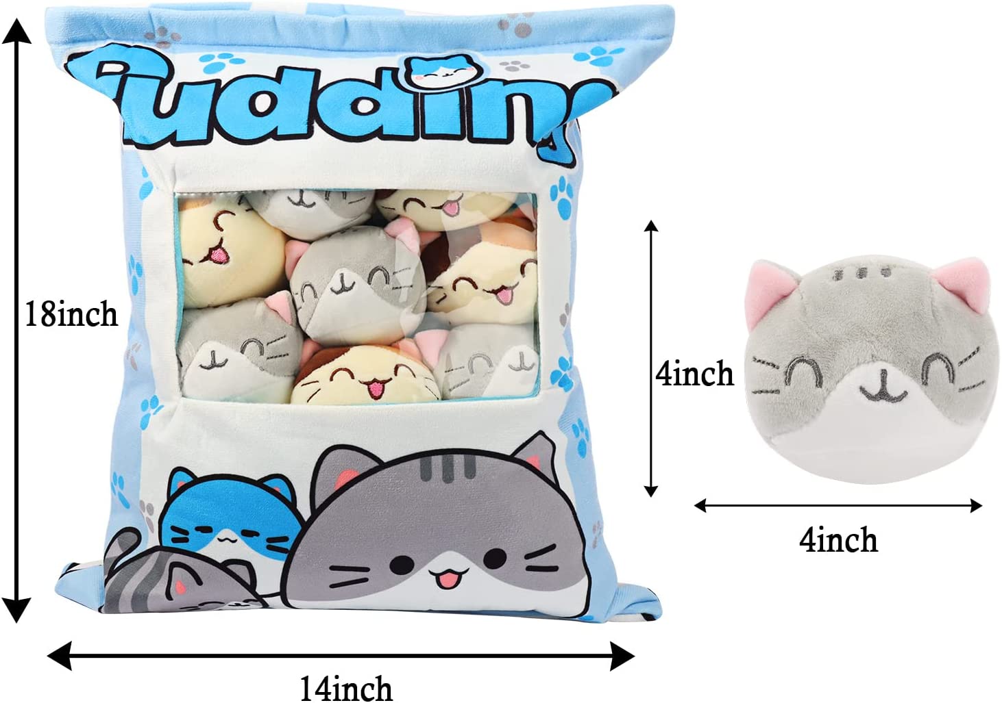 • 【Adorable Pillow with 8 Little Cat Dolls】There are 8 small stuffed cat plush dolls in each cute throw pillow. A bag of soft stuffed toys, so cute! Open the zipper, you will not only get a cute throw pillow, also you can get 8 lovely cat dolls. They are eye-catching for your kids and you can take them out as home decorations which will make your room more lively and cosy.