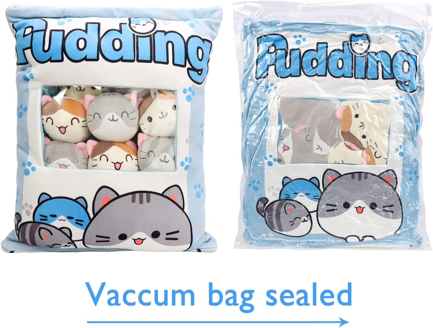 You could not miss this ultra-soft pudding plush pillow with a bag of fluffy stuffed animals!!!