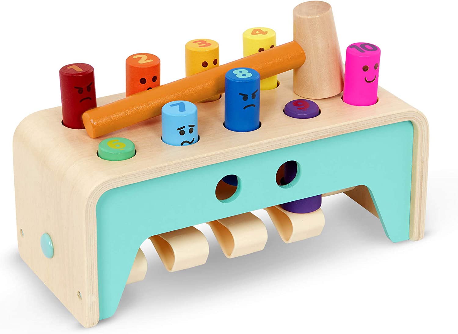 Battat – Wooden Hammer Toy for Kids, Toddlers – Pounding Bench with Pegs and Mallet –Colorful Developmental Toy – Pound & Count Bench – 1 Year +