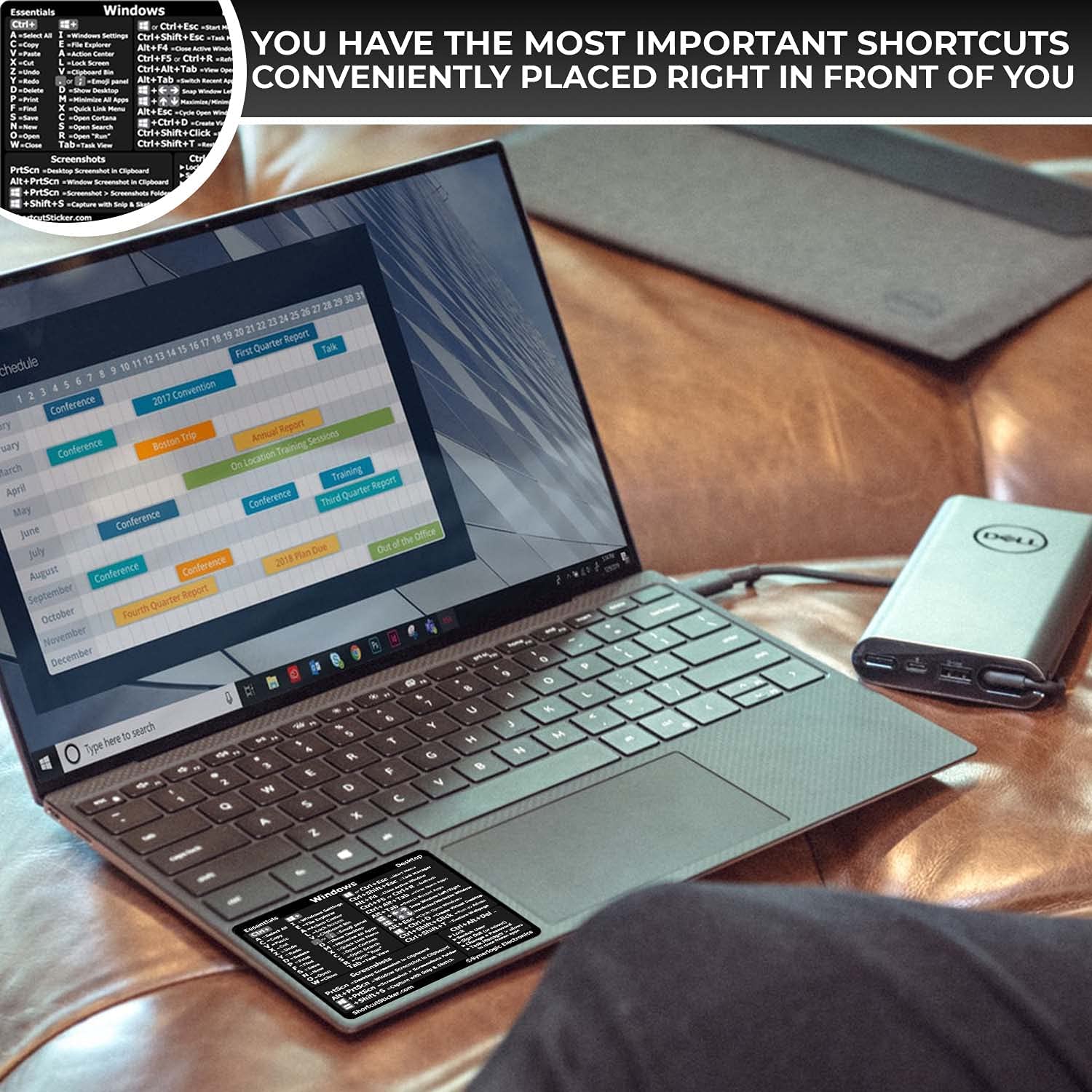 Your Windows Essential Shortcuts Sticker is an accurate, comprehensive list of keyboard shortcuts that you need. It contains a list of shortcuts for any laptop or desktop running Windows OS 10, and fits easily on the bottom corner of your laptop so you can quickly look down and read it. It is perfect for the beginner who wants to learn how to use their laptop and save time by having the key Windows shortcuts at their fingertips. Designed by SYNERLOGIC, the sticker is made of high-quality laminated chemical-proof vinyl and is more durable and convenient than a printout of the shortcuts.