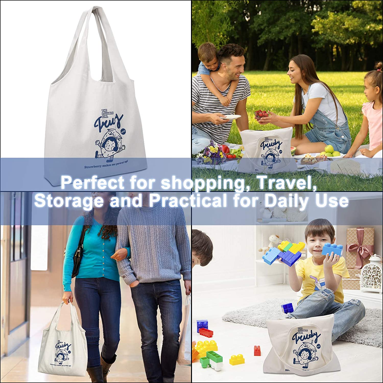 - X-Large Capacity: Canvas tote bags are very big which can hold up to 50+ pounds of groceries and replaces 2-3 conventional grocery bags. Long handles of the reusable shopping bags allow for hand holding or carry on the shoulder for easier carrying. The foldable aesthetic tote bag is perfect for shopping, groceries, travel, storage and practical for daily use.