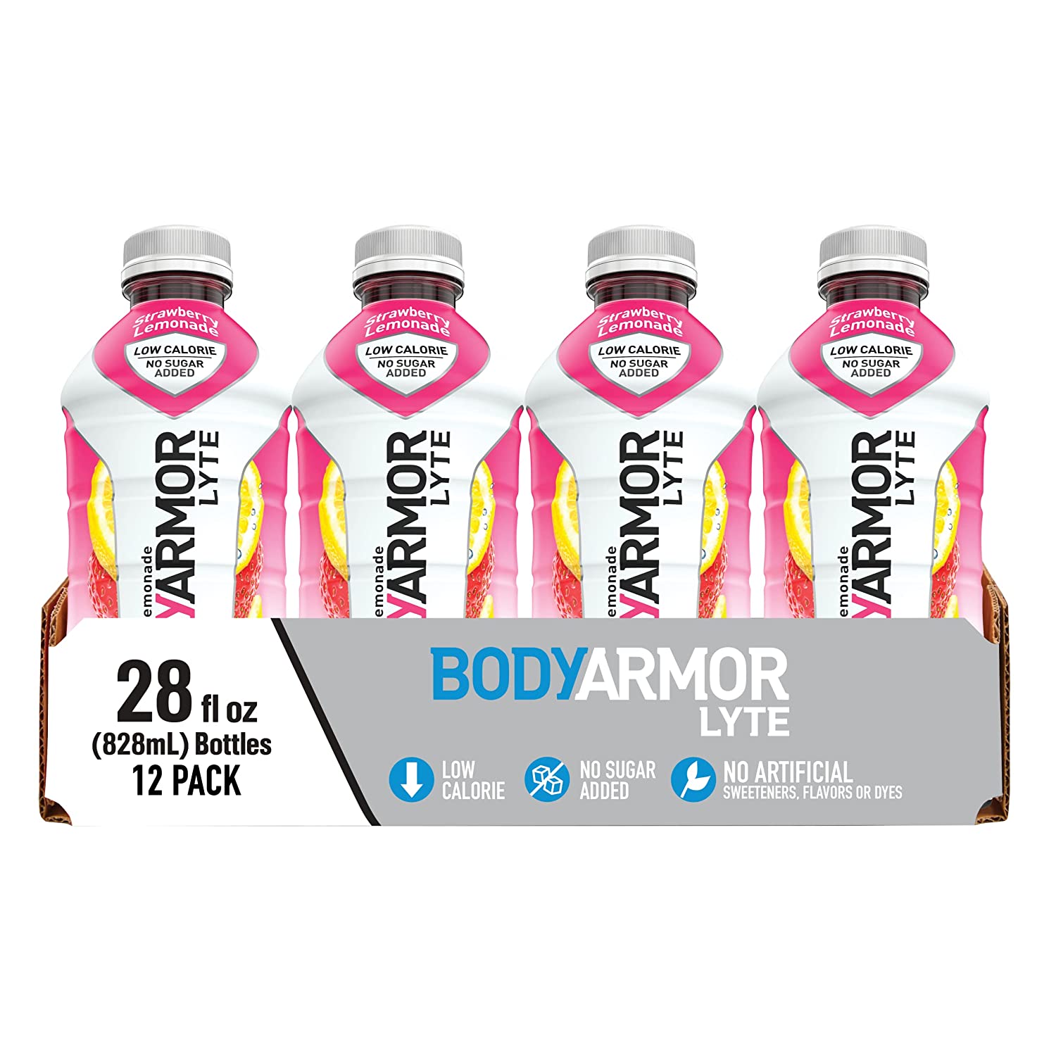 BODYARMOR LYTE Sports Drink Low-Calorie Sports Beverage, Strawberry Lemonade, Natural Flavor With Vitamins, Potassium-Packed Electrolytes, Perfect For Athletes 16 Fl Oz (Pack of 12)
