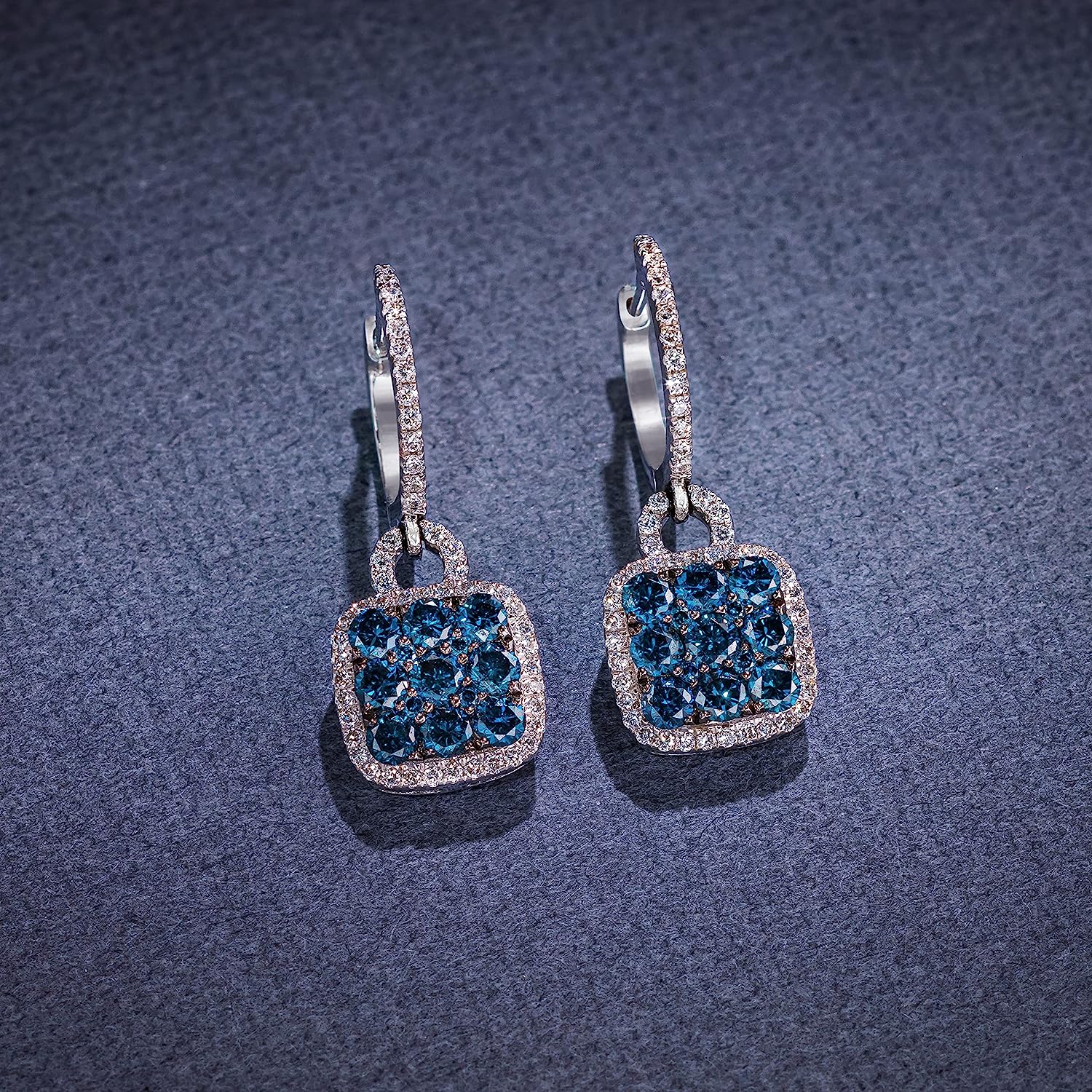 UNMISTAKABLE ELEGANCE - These glamorous handcrafted 14k white gold dangle earrings by Le Vian 1 1/4 carat white and blue diamonds. These earrings feature huggie latch back for comfortable and secure wear all day long. These striking earrings are the subtle statement piece you’ve been looking for
