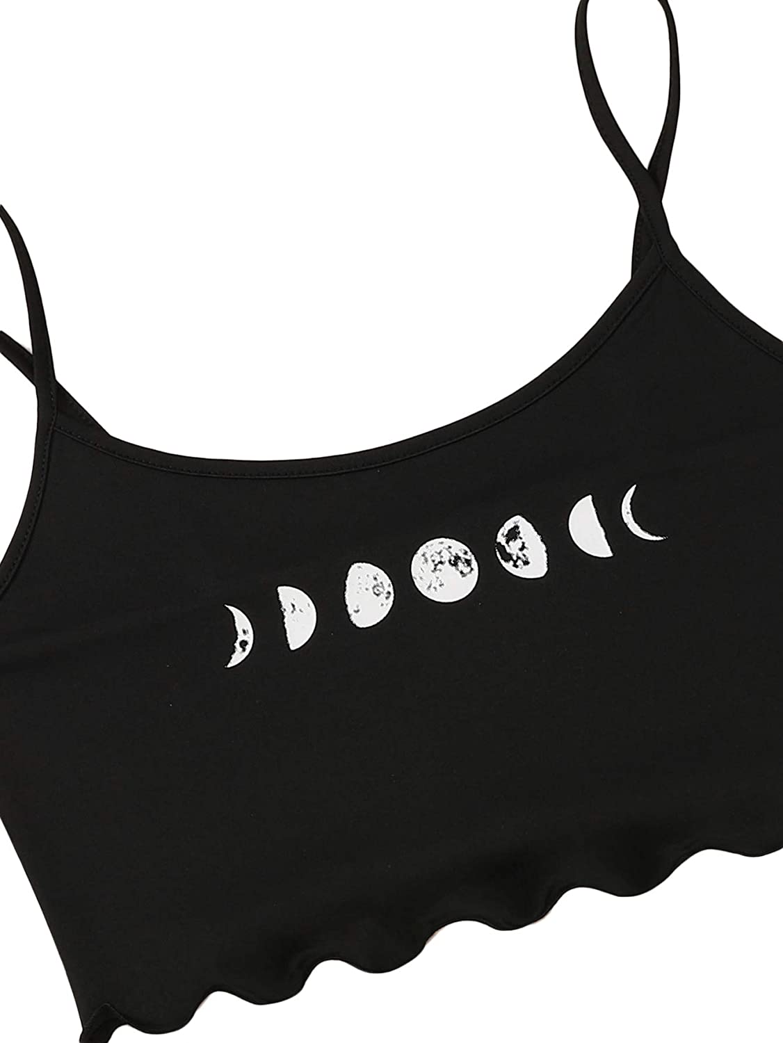 SOLY HUX Women's Cartoon Print Lettuce Trim Cami Top and Shorts Cute Pajama Set Sleepwear