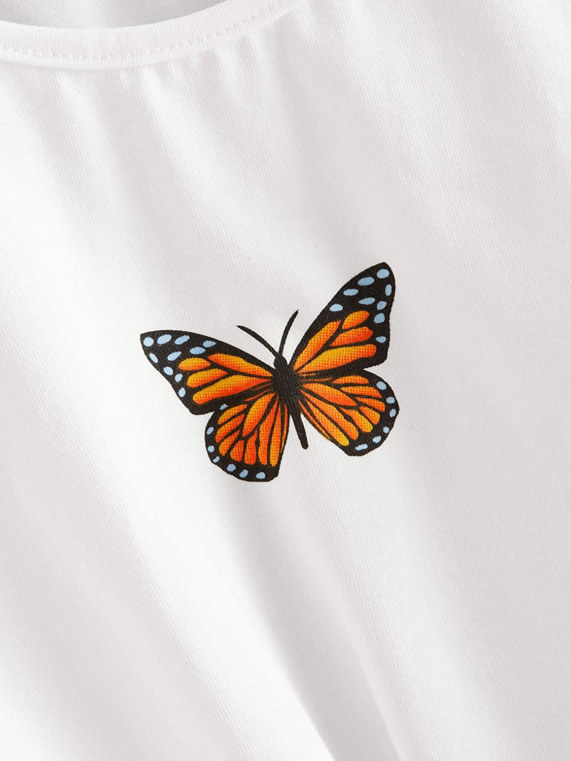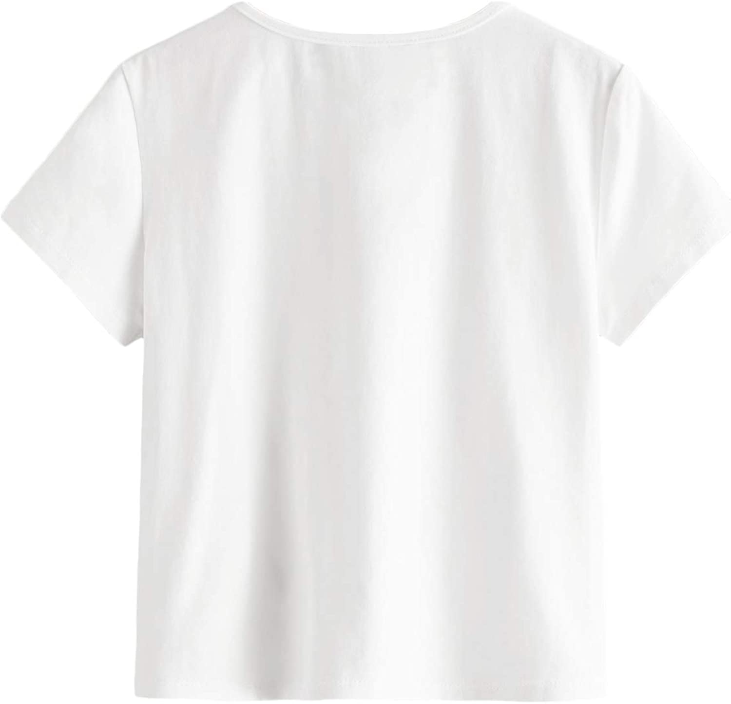 Romwe Girl's Casual Butterfly Print Short Sleeve Tie Knot Front T Shirt Tee Tops