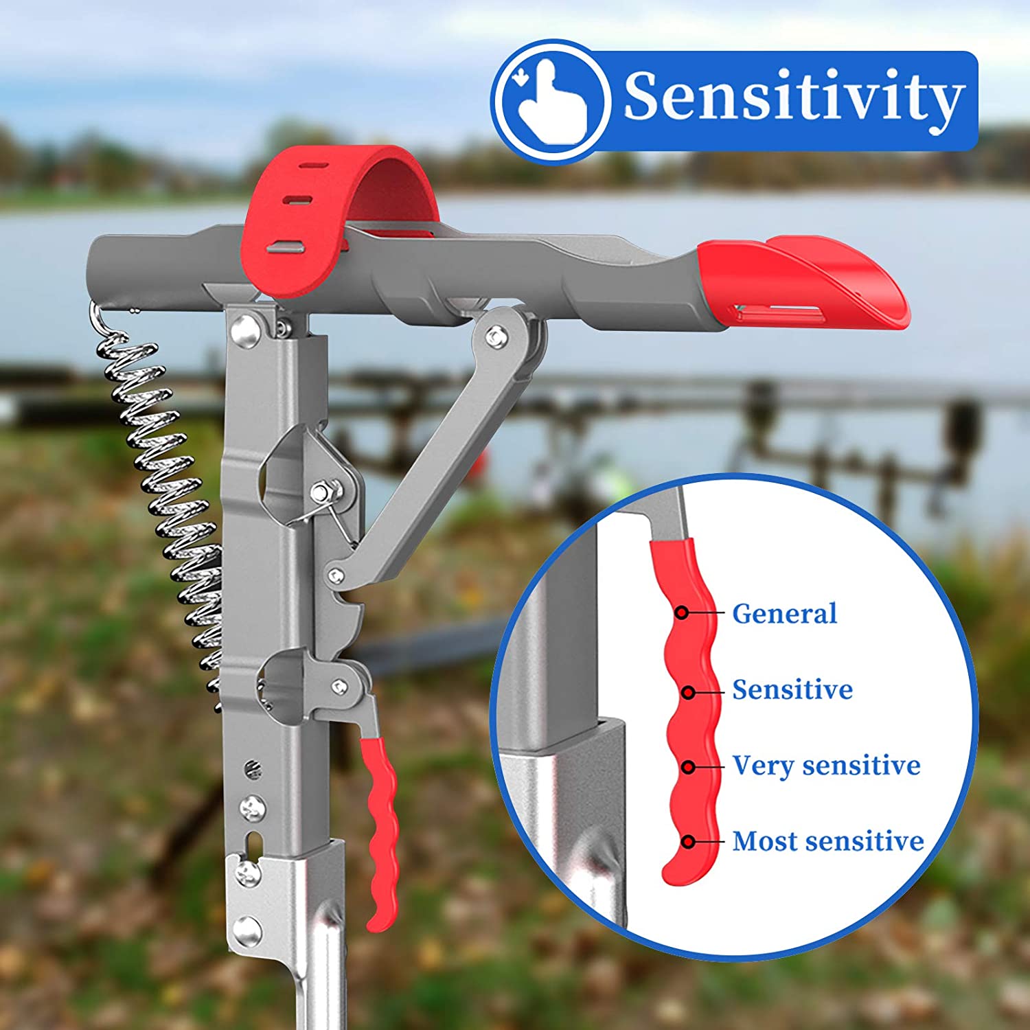 【Fully Automatic】 Our fishing bracket can sensitively detect fish biting the bait. It will bounced when the fish bit the hook. So you only need to set up the fishing rod, and relax your hands to enjoy nature quietly.