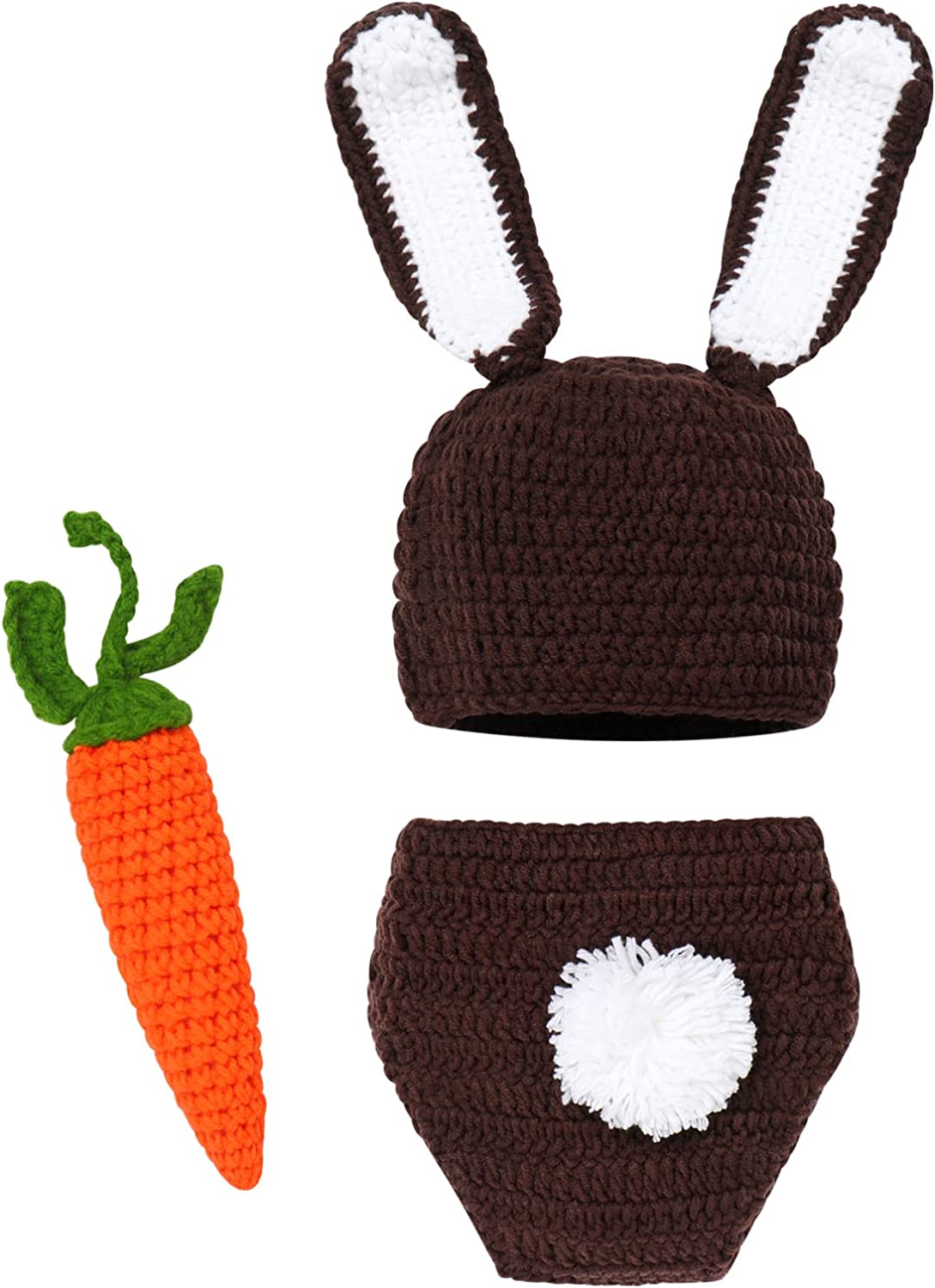 ♛【Easter Bunny Photo Shoot Costume】Newborn baby boys girl 1st Easter bunny photography props costume, fancy photo shoot outfit set includes Diaper Pants + Beanie Hat with or without Carrot. Super cute striped crochet-knit baby boy girl outfit set for first Easter photo props. Adorable rabbit newborn boy bunny outfit 1st Easter photoshoot outfit dress up clothing, great as newborn party costume, newborn photos, cake smash 1st birthday outfit set, Christmas outfit, playwear, baby photography prop;