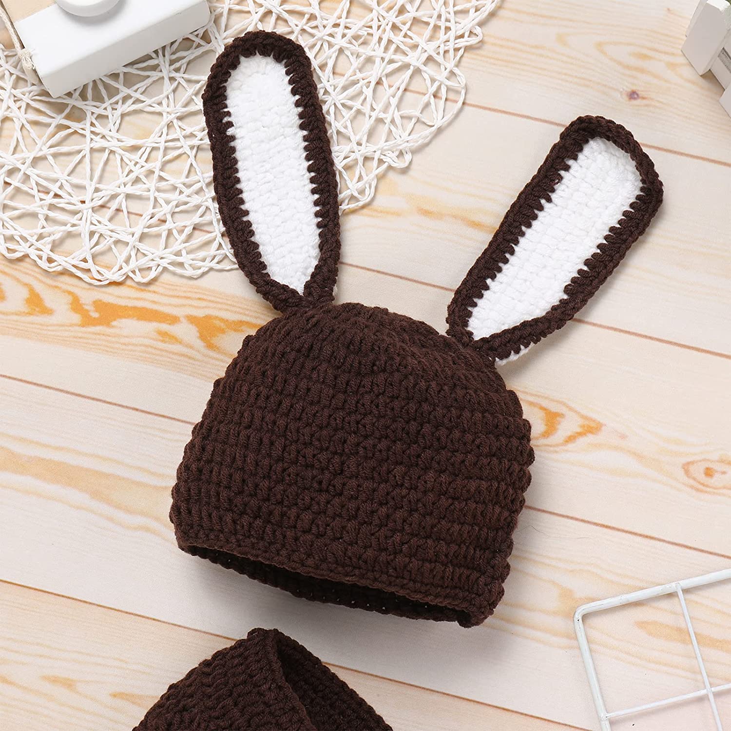 ♛【Crochet-knit Bunny Beanie Hat】Cute, soft and fully hand made baby knit crochet costumes, 1st Easter bunny newborn pictures outfit set. Newborn baby boy girl Beanie hat with cuteness animals rabbit ears design, great for spring prop, newborn pictures, first pictures. Super cute Halloween, Easter, or newborn picture idea, take pictures in an Easter basket, Happy Easter pics of newborn bunny outfit, Great newborn photography set as Easter gifts first pictures, baby-shooting for your little one;