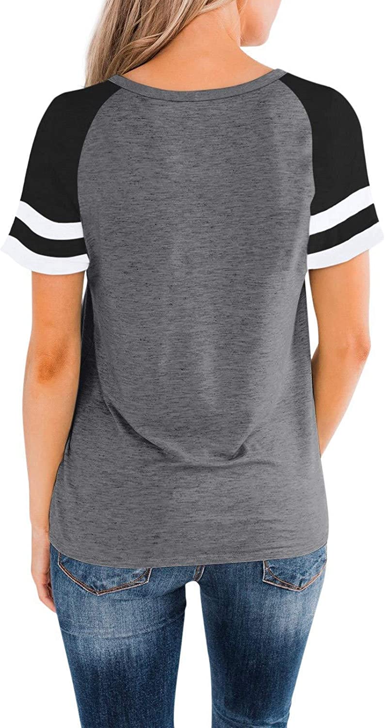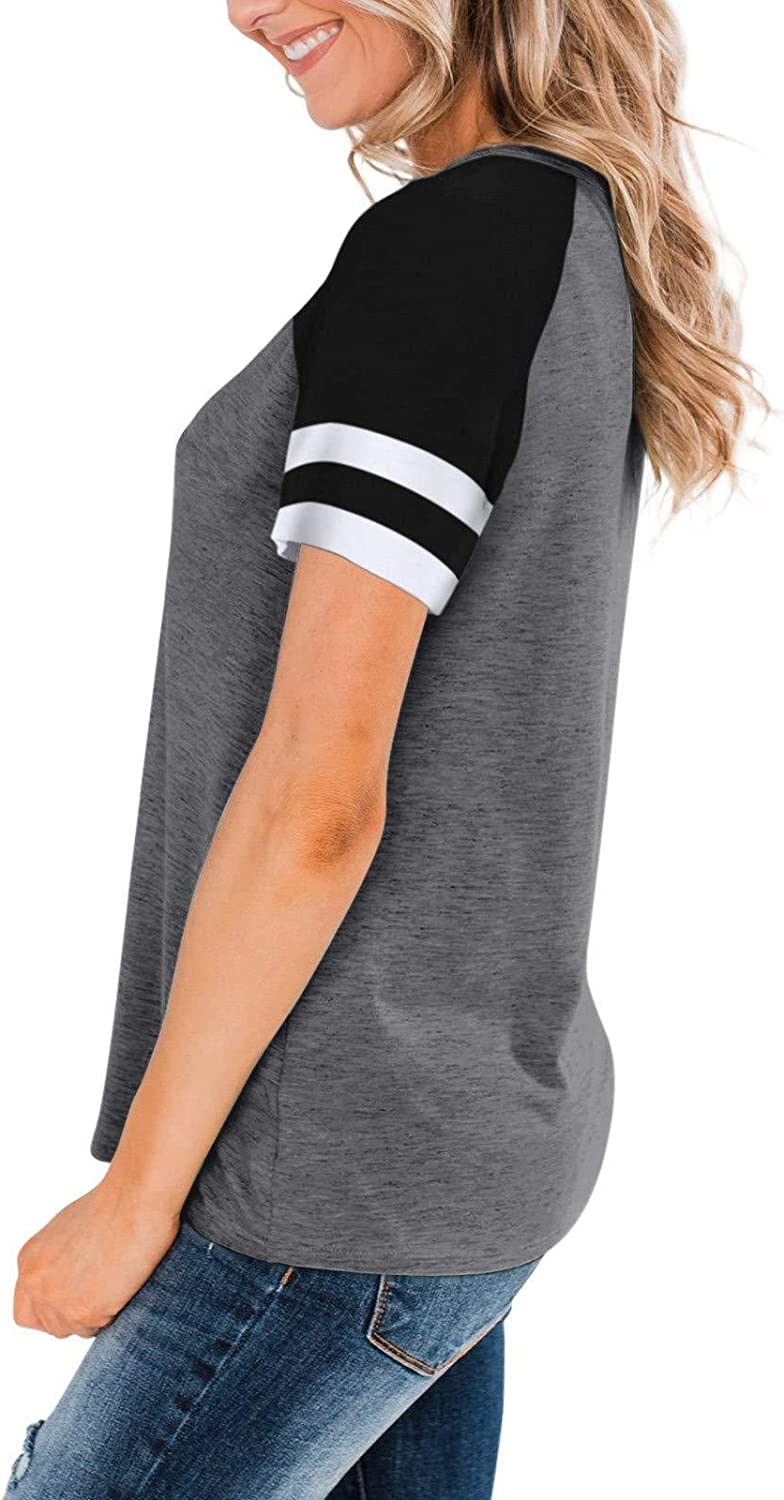 IHOT Womens Color Block Short Sleeve Crew Neck Loose Fit Workout Top Casual Tunic Tops Athletic T Shirt