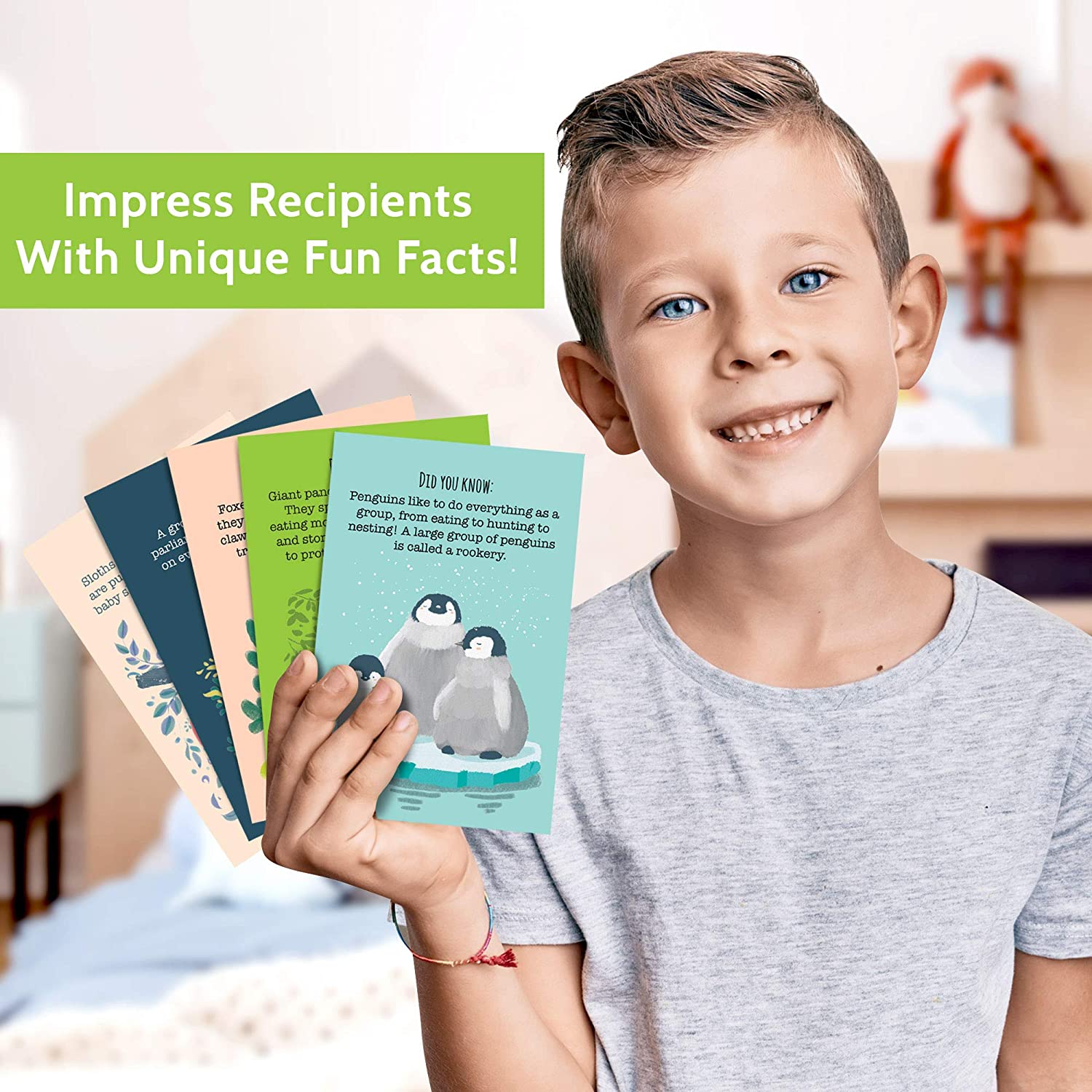 - 40 POSTCARDS, 2 OF EACH DESIGN - Our bulk 40 postcards set features 20 cute animal designs and amazing fun facts. It will be hard to decide which postcard to send out, because you’ll want to share them all!