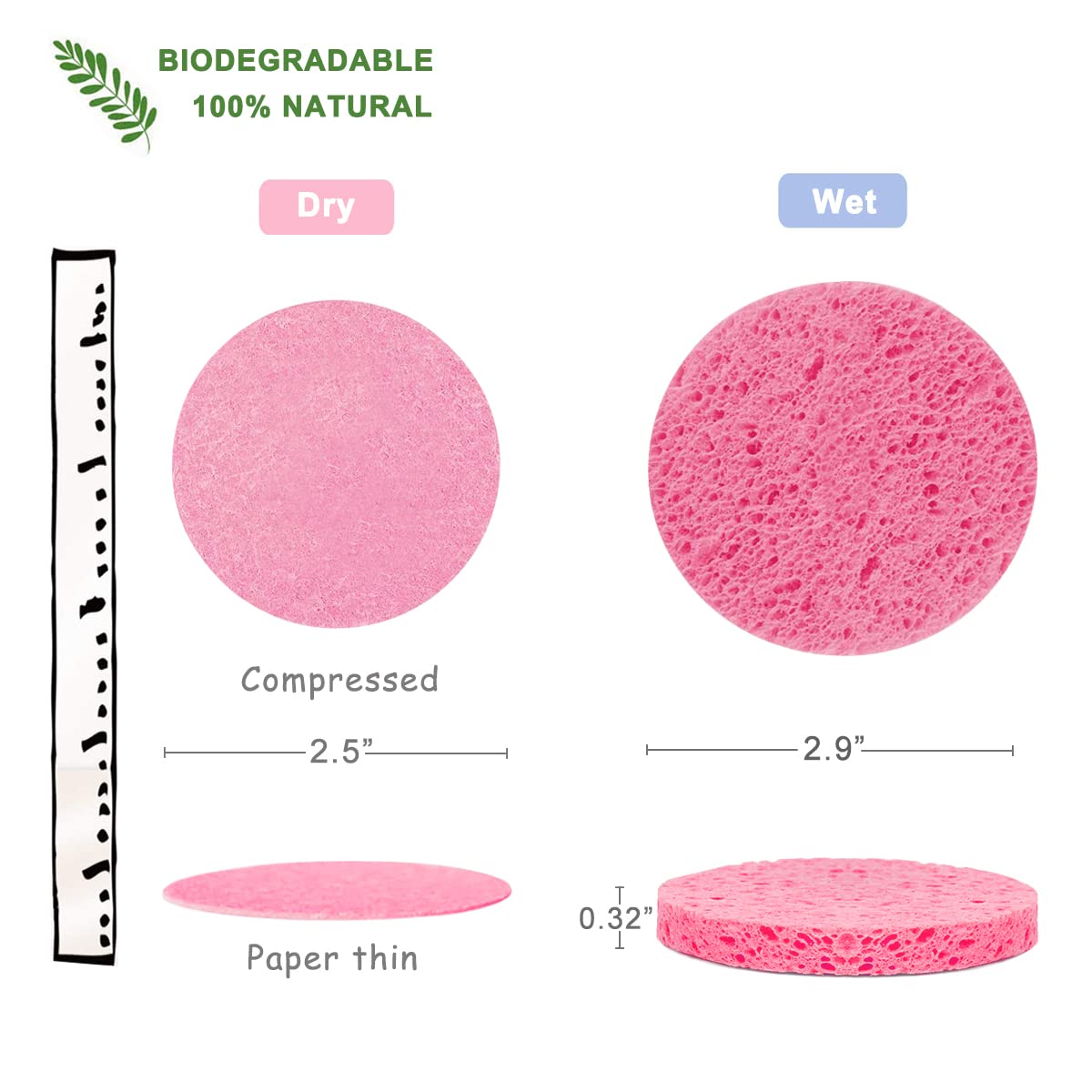 • Perfect Size and Travel Essentials - Each sponge is compressed into a thin disc for easy storage and travel. Once it has absorbed water, it will expand to full size. (2.9” in diameter x 0.32” in thickness)
