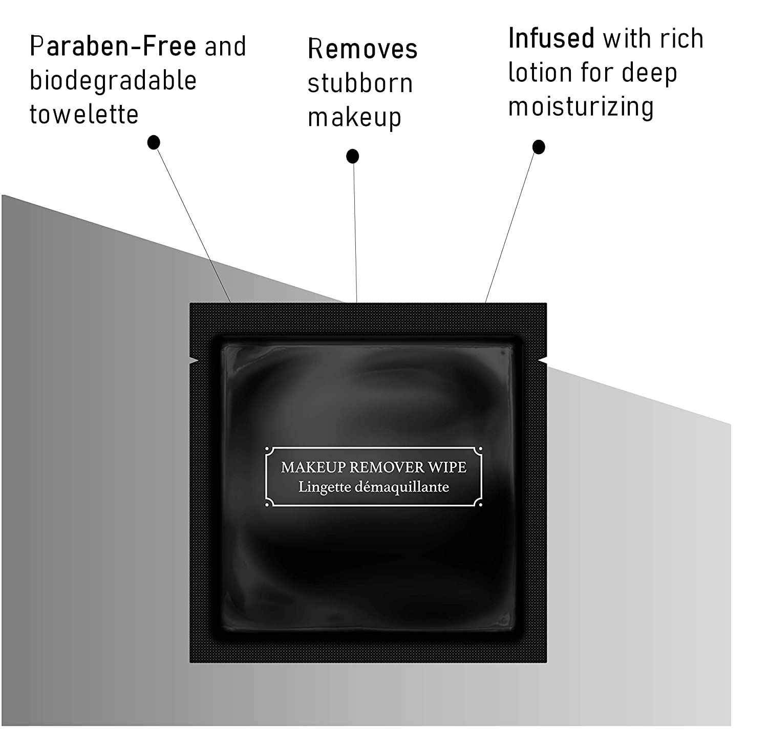 DELUXE IN-ROOM AMENITY WIPES - The best of your rooms deserve equally great amenities. The elegant packaging of our pocket-sized cleansing wipes is perfect for your guests’ skin care and travel essentials kit.