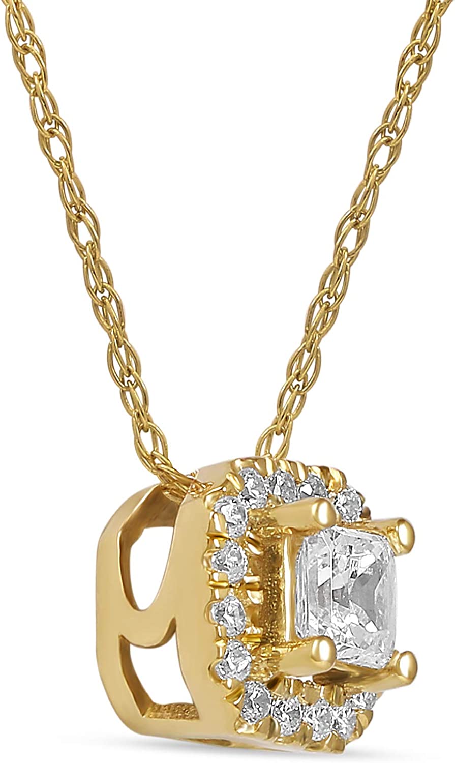 LA BELLA 10k Gold 1/4 CT.TDW. Diamond Halo Pendant Necklace for Women Girls Diamond Jewelry Gifts for Her by Labella
