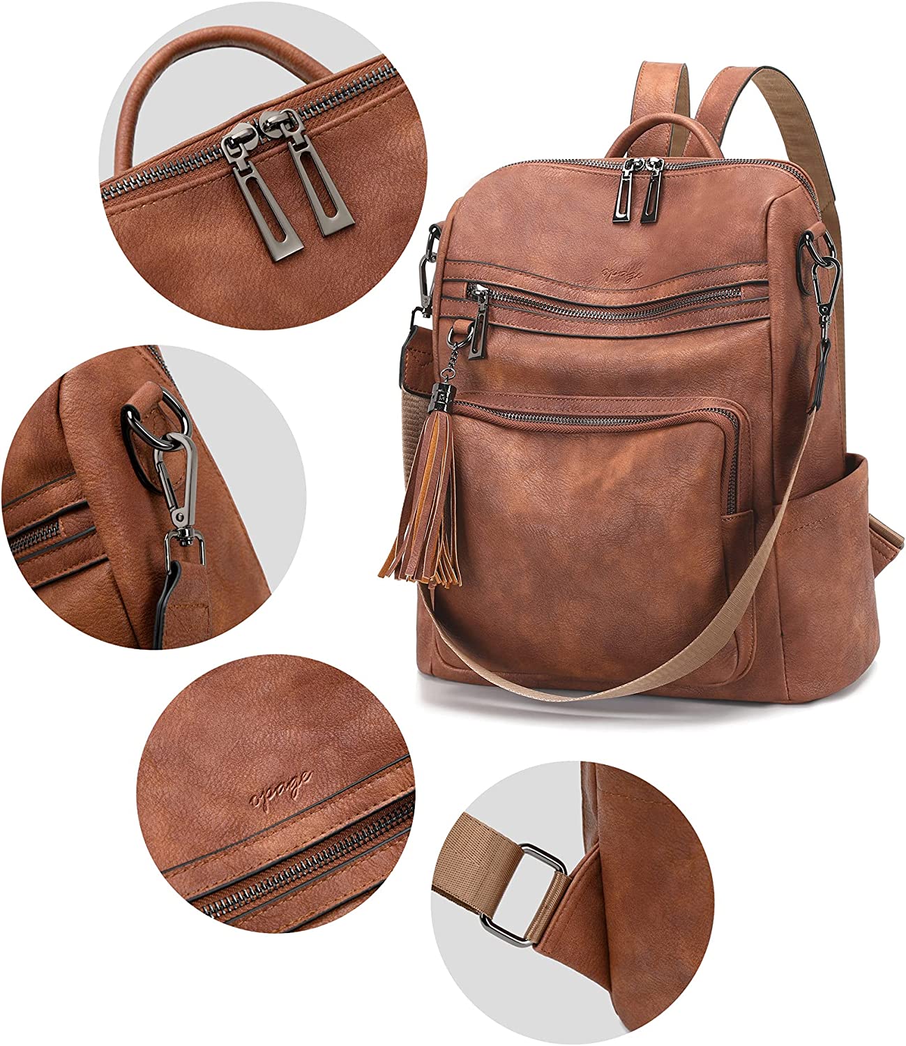 OPAGE Leather Backpack Purse for Women Fashion Tassel Ladies Shoulder Bags Designer Large Backpack Travel Bag