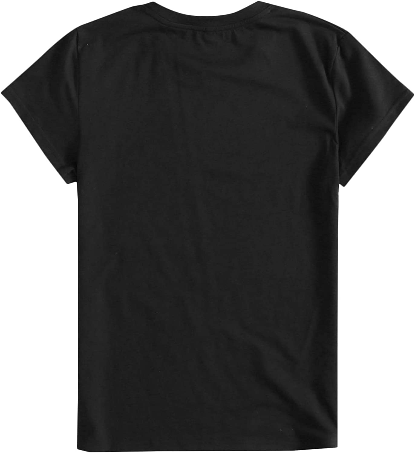SweatyRocks Women's Heart Print T Shirts Summer Funny Short Sleeve Tops for Teen Girl