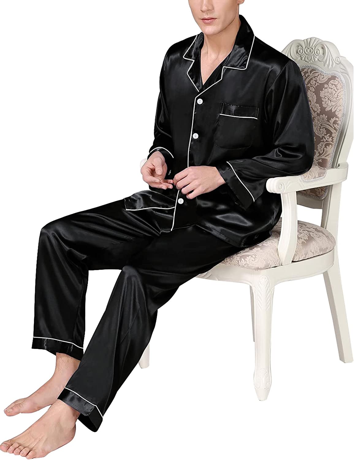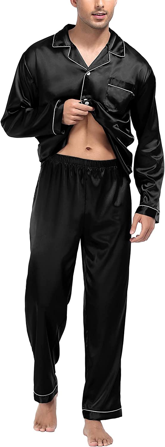 - DESIGNED FOR LUXURIOU & COMFY: The High-Quality Satin Men's Pajama Set has a full button-down front Sleepshirt that is easy to get on and off, features a front pocket on the chest. The elastic waist PJ bottoms make relaxing as comfortable as possible
