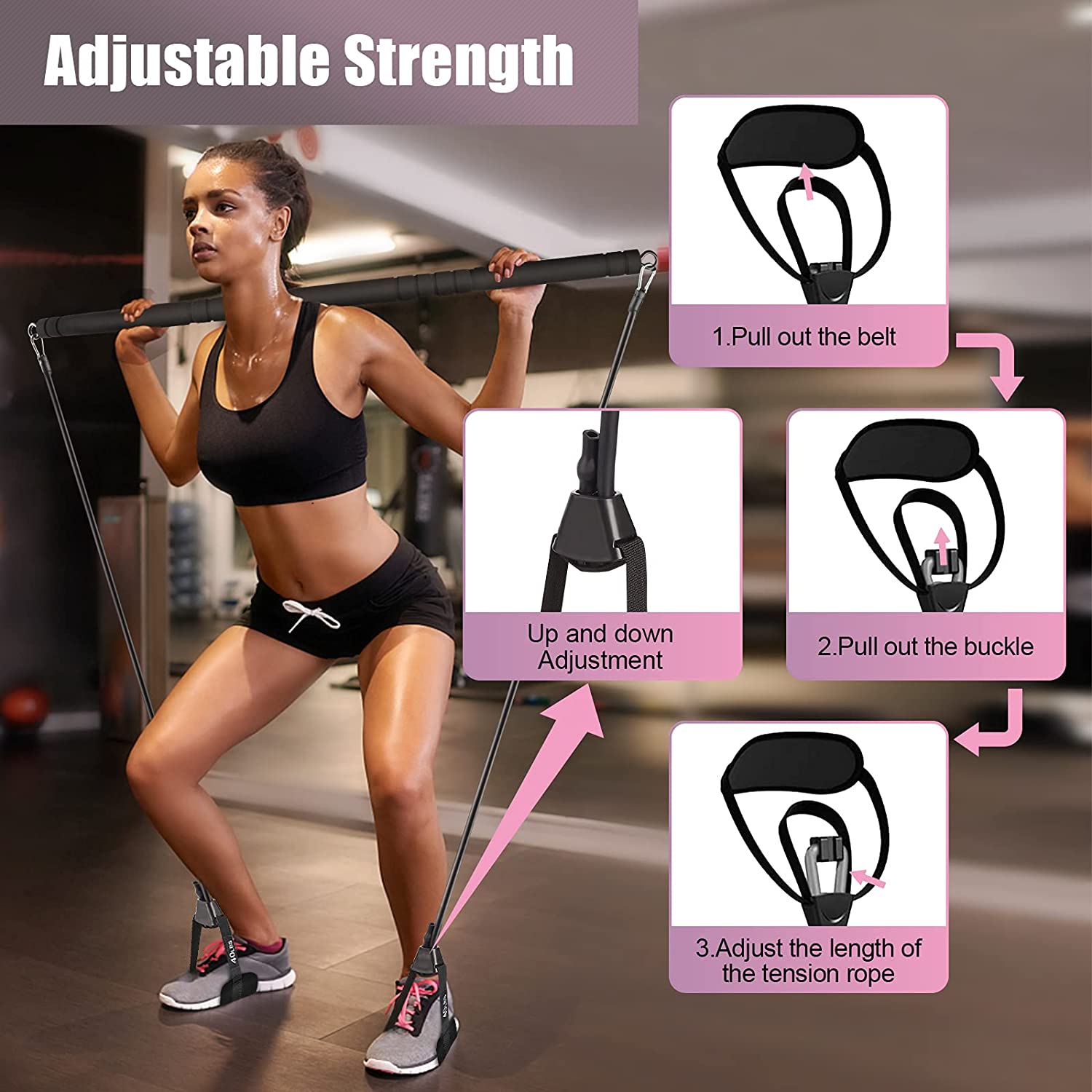 ✅ 『Take Portable Gym Anywhere』Detachable pilates workout bar crafted with three-section steel sticks, just needs to rotate the screw and connect full bar length to be 38.8inches. It is very easy to set up and disassemble. The resistance bands come with metal buckles, so you change and take off them from the pilate bar conveniently. Lightweight and Portable design allows you to store them without taking up a lot of space, and exercise at home, in the office, on travel, vacation, etc.