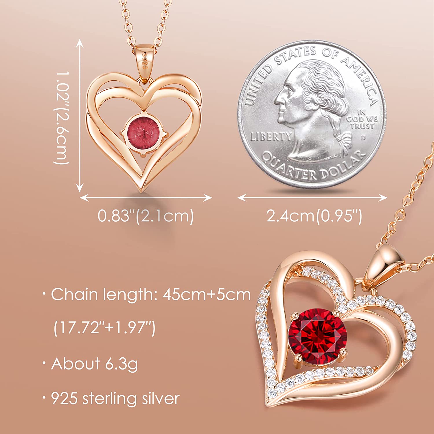 LOUISA SECRET Love Heart Birthstone Necklaces for Women, 925 Sterling Silver Women Pendant Necklace, Mother’s Day Birthday Anniversary Jewelry Gift for Woman Mother Mom Wife Her Girlfriend Girl