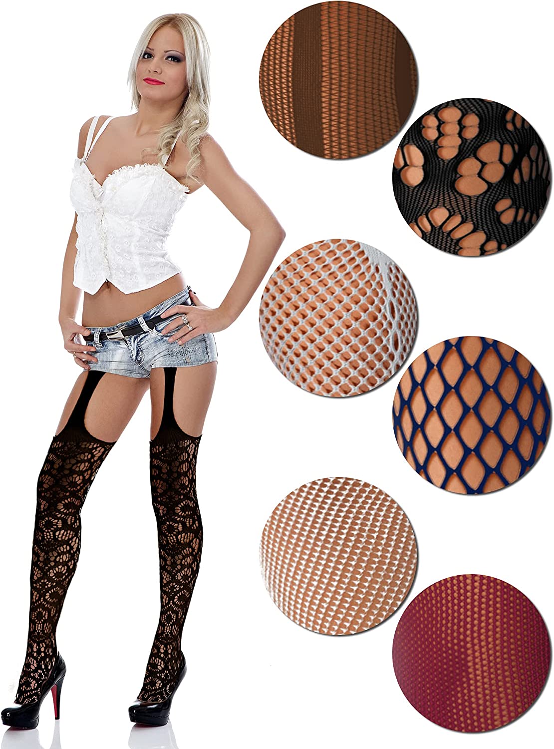 Package content: package includes 6 pairs suspender pantyhose stockings in different styles, sufficient quantity to satisfy your daily wearing needs; Color: as pictures shown