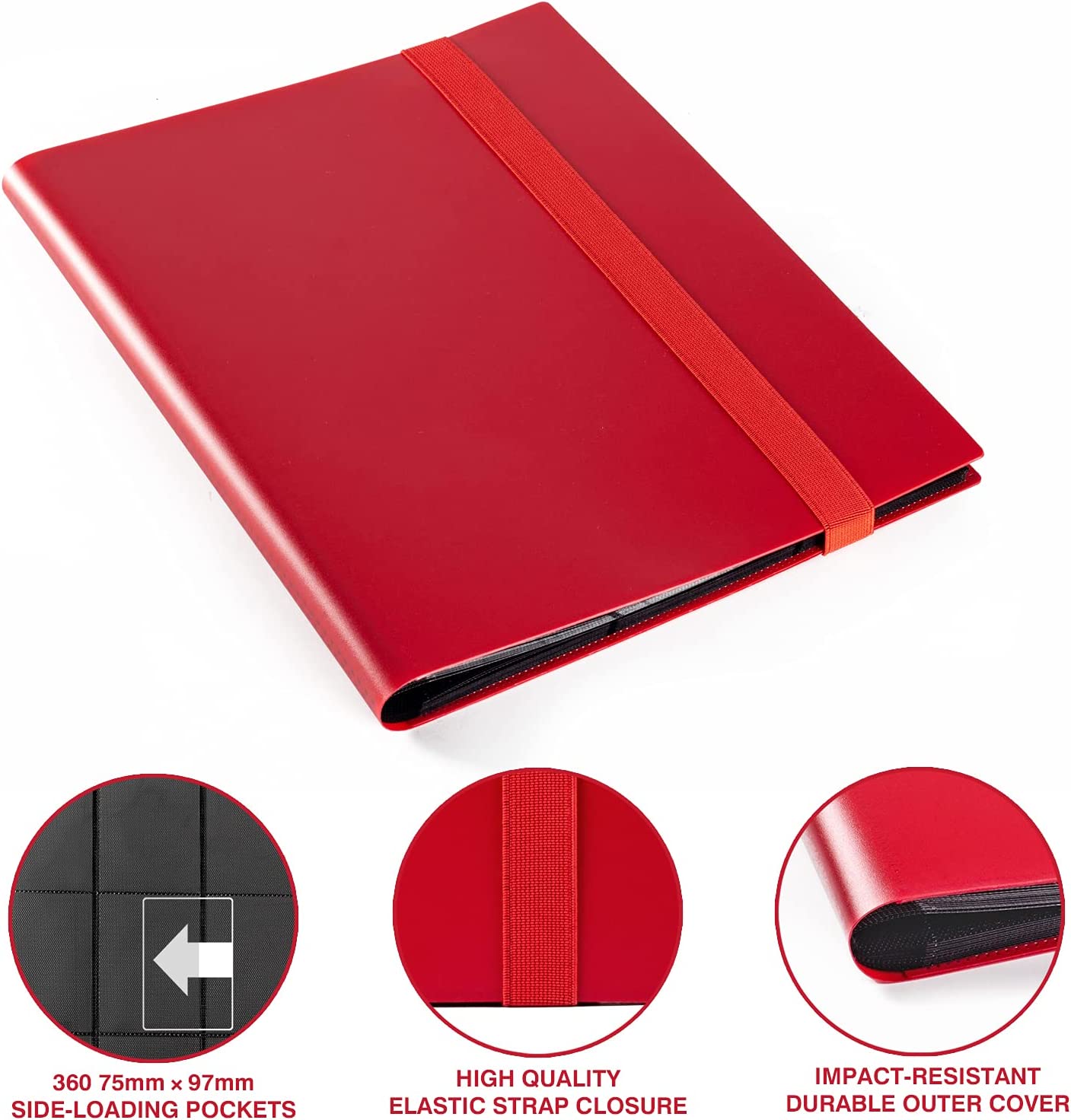SECURE - Side-loading pockets designed to keep your cards securely in place. The outer cover of the folder is very sturdy and cannot bend under the pressure of the elastic closure. Meanwhile, a high-quality elastic band fastener keeps the trading card folder closed. No cards will spill.