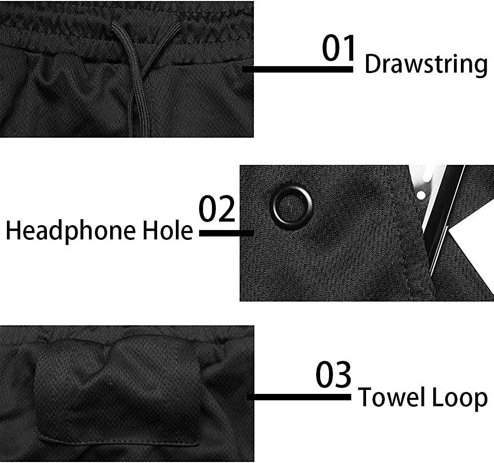FUNCTIONS: With this athletic shorts, you can put any kinds of cellphones into the liner pocket and enjoy music through a unique headphone hole while doing sports; No need to find your towel everywhere, keep it in the towel loop and ready to use; Except 2 slash pockets, an extra small pocket with a zipper can protect your car key, cash, and other valuables.