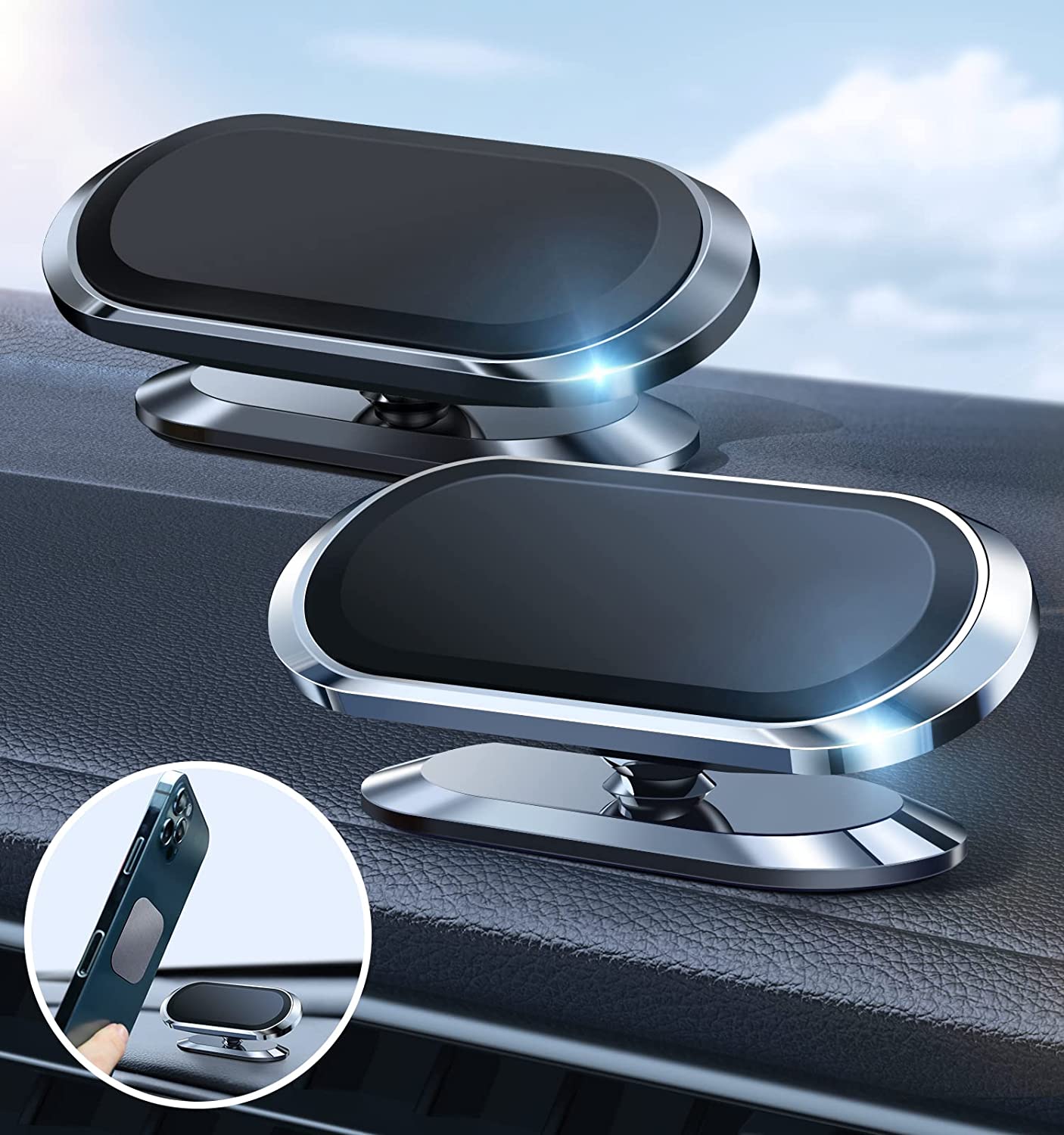 2 Pack Metal Magnetic Phone Holder for Car [ 2022 Upgrade 8X N52 Magnets] Strong Magnet Car Mount, One Second Put and Take & Dashboard 360° Rotation, Fit with iPhone and All Smartphone