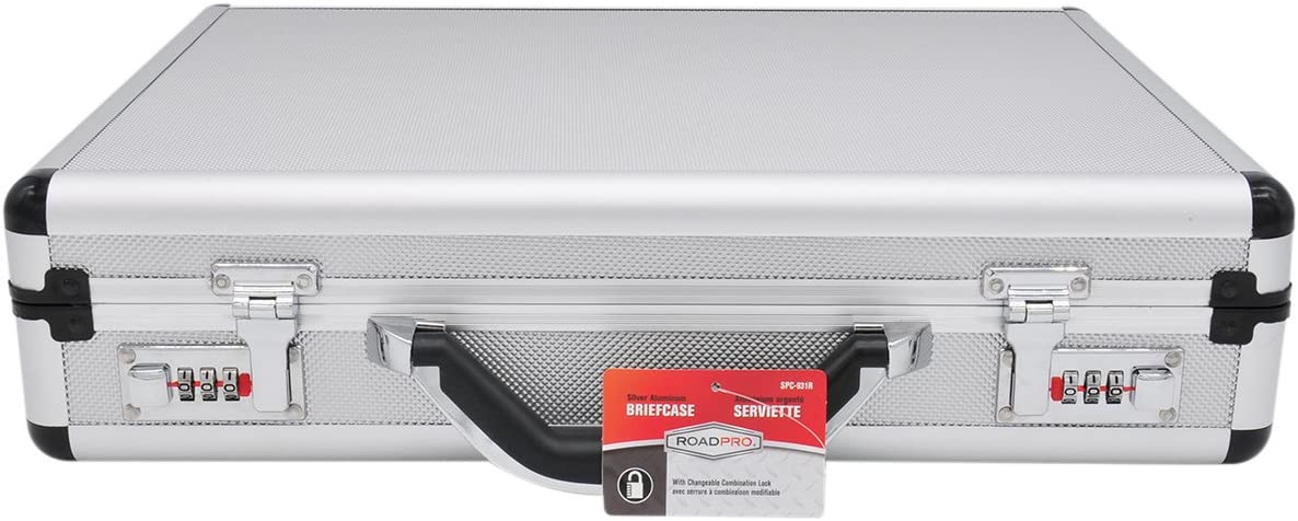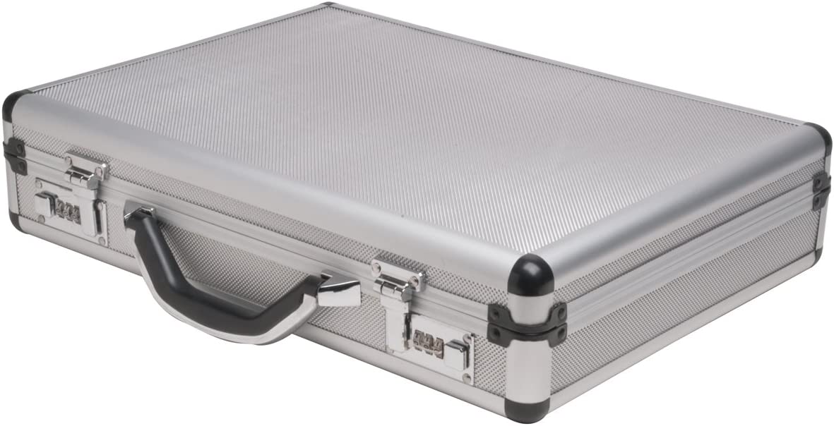 This 17.5-inch silver aluminum briefcase comes with two changeable combination locks for added security. This feature is particularly important for professionals who work with confidential or sensitive information, such as professional truckers with logbooks as well as lawyers accountants and financial advisors. The lined interior with pockets provides separate compartments for note pads pens cell phone and other small items. The aluminum exterior is designed for maximum durability and minimal weight. This is a metal travel briefcase and trucker filing case that weighs less than 5 pounds yet offers sturdy and portable storage for important papers and log books and any other items that are for your eyes only until you deem it otherwise. The lined interior protects your important items and there are plenty of pockets in various sizes to keep things organized - even on long hauls. This aluminum briefcase is also an ideal choice for occasional trips to and from clients and home office with necessary documents for those who looking for alternatives to leather briefcases. These hard case briefcases offer a range of benefits that make them an attractive option for various professions and personal needs including protection from damage during transport and an additional layer of security all while maintaining a professional appearance.