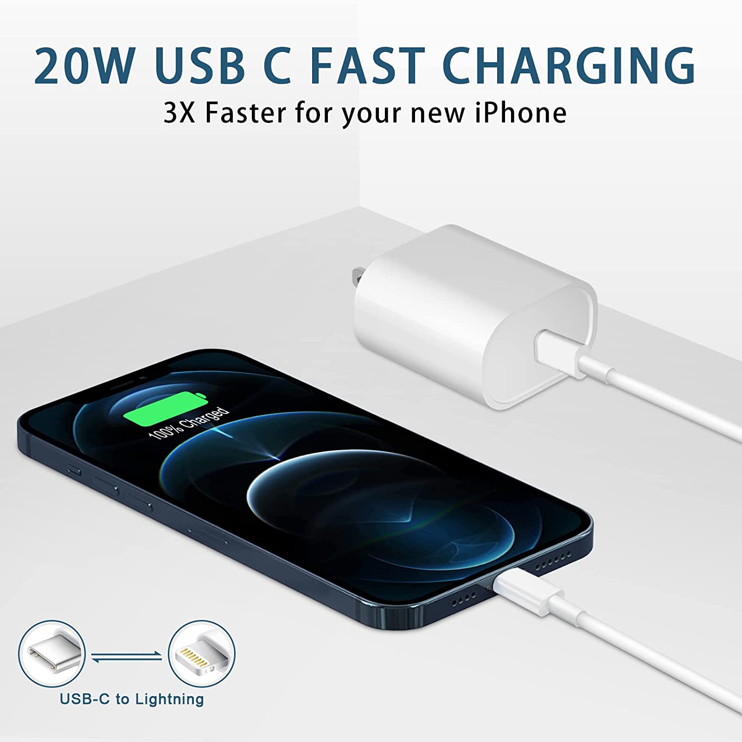 • 【Universal Compatibility】 The 20W PD phone chargers for iphone can fast charge iPhone 14/14 plus/14 pro/14 pro max/13/13 pro/13 pro max/12/12 pro/12 pro max/12 mini/11/11 Pro/11 Pro Max/XR/XS Max/XS/X/8 Plus/8 , iPad Pro, AirPods Pro, and charge iPhone 7/7 Plus/6s/6s Plus/6/6 Plus/SE/5s/5/5c at standard speed.