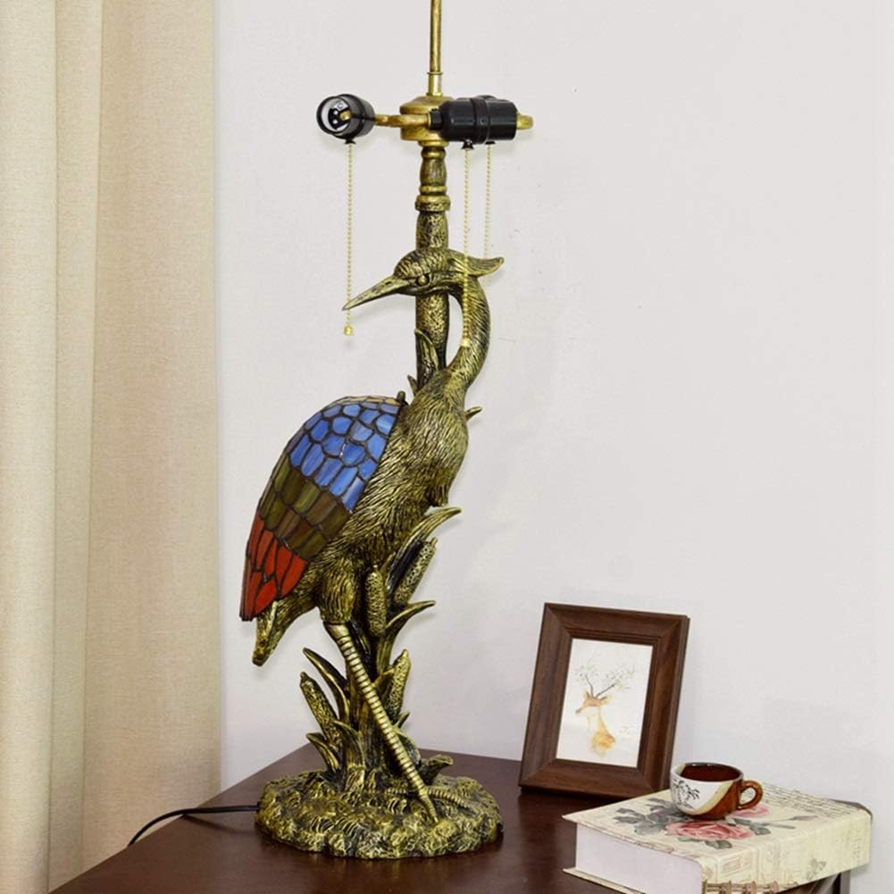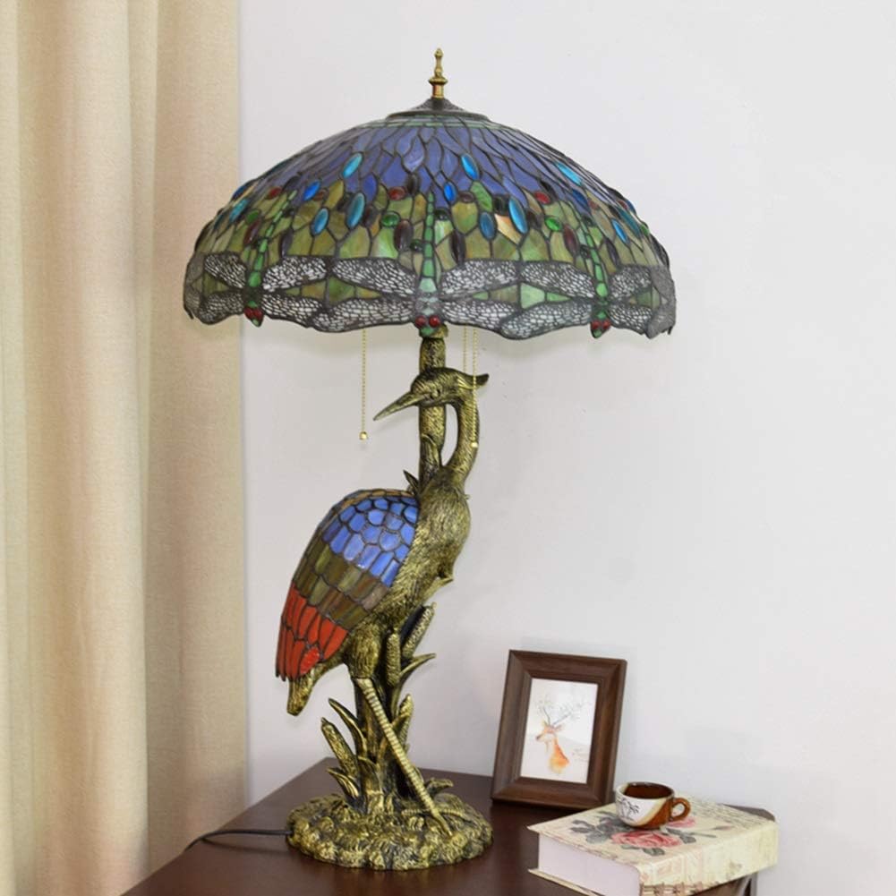 Handmade Stained Glass Table Lamp 18" Tiffany Style Large Table Lamp Dark Red Blue Dragonfly Desk Lamp Creative Antique Light Base for Living Room Study Bedroom Table Lamp (Color : Female)