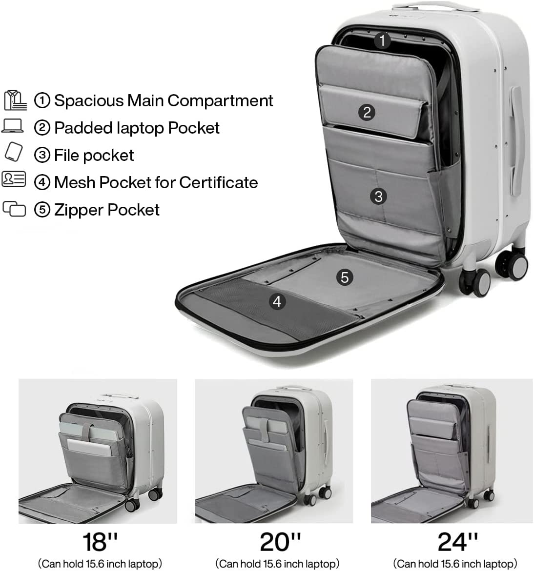 【INNOVATIVE DESIGN】Front Laptop Pocket helps quickly access your essentials like 15.6'' laptops, documents and more, assist you save time. Stylish and beautiful design, this hard luggage has won the Kapok Award.