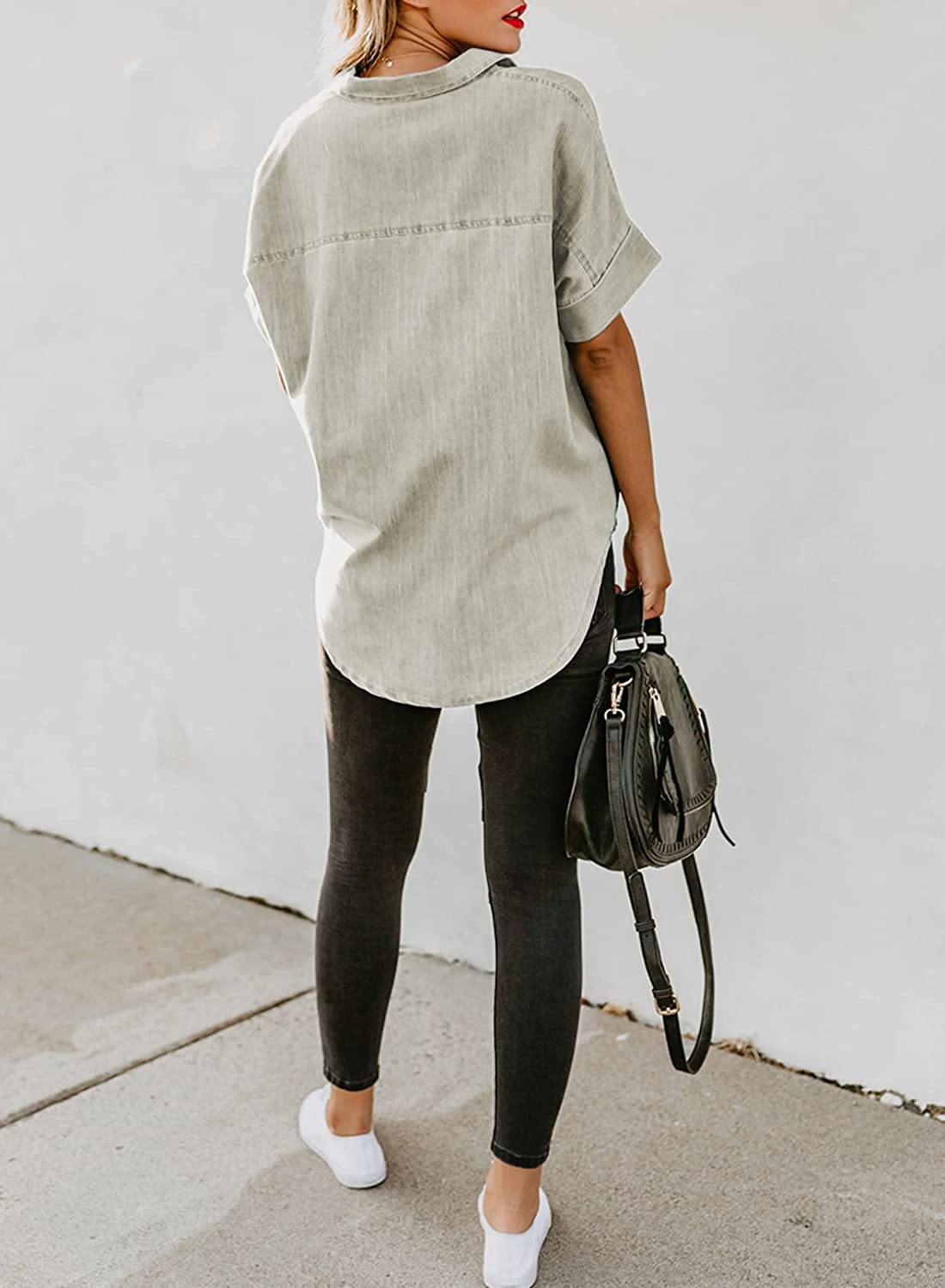 Astylish Womens Button Down Shirts V Neck Loose Casual Shirt