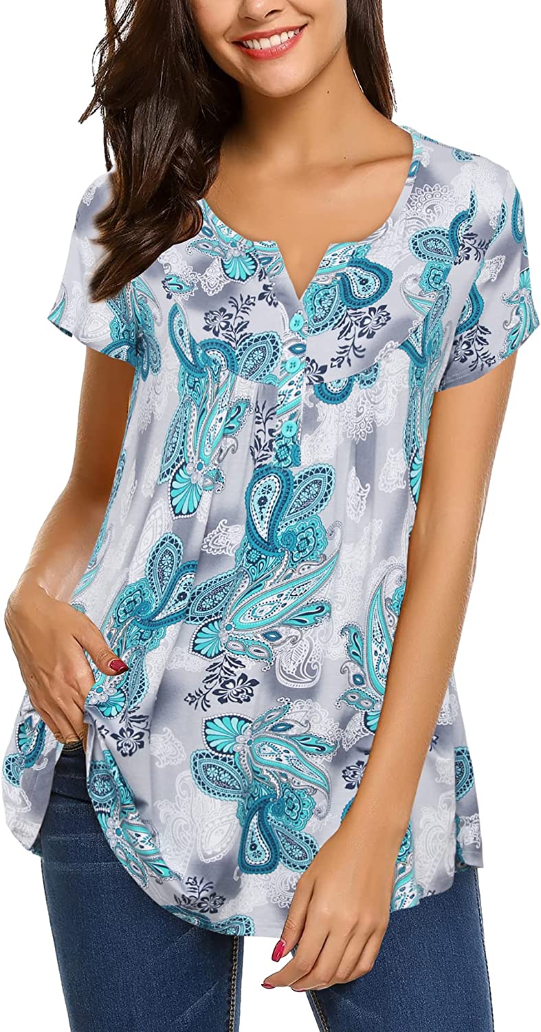 Features: Henley v neck,Button-up,Paisley pattern or solid color, cute front ruffle and flowy hem can perfectly modify the belly, good length can cover hips and easy to pair with leggings, pants and shorts etc, very casual, soft, lightweight and comfortable