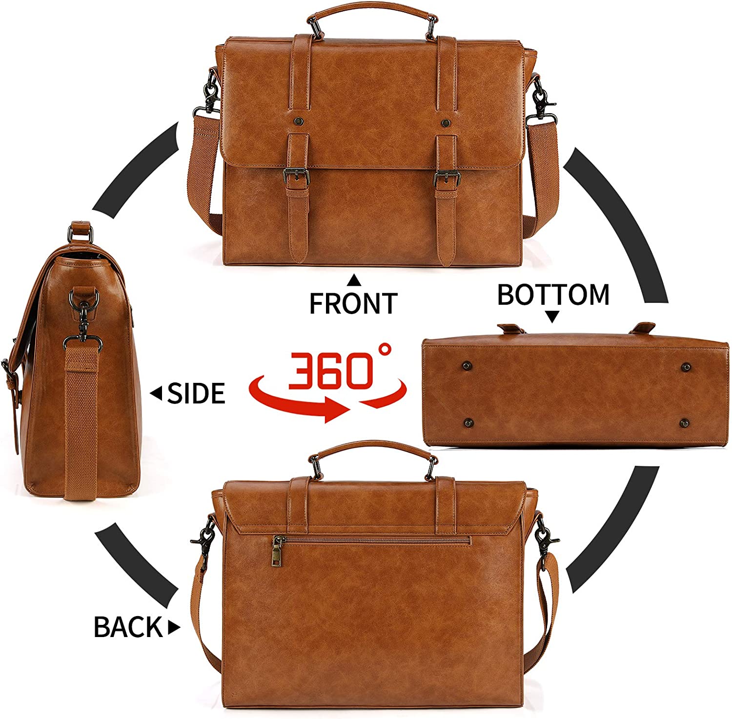 - 【Removable & adjustable Strap】Messenger bag has an adjustable strap with shoulder pad for comfortable carry, the leather messenger bag can be used as a briefcase. Single shoulder, cross body. You can also remove the shoulder strap and carry it with the convenient handles.