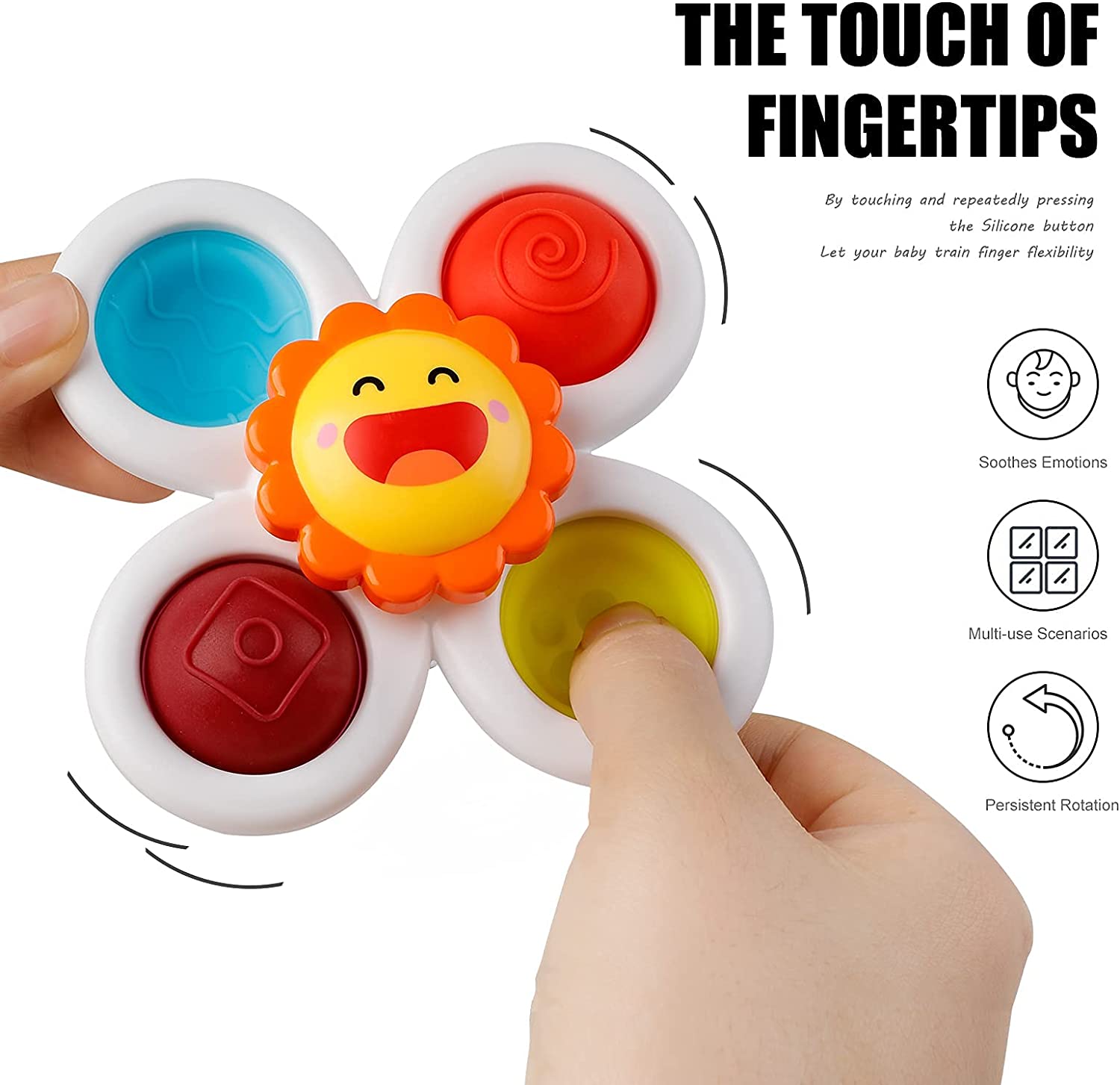 Suction spinner toys for babies: The shape is sleek, non-toxic and durable, use high-quality food-grade soft silicone, it does not contain any harmful substances,which is more comfortable to play, easy to grasp, will not harm children, so your child can play with confidence and cares for the kids tender hands