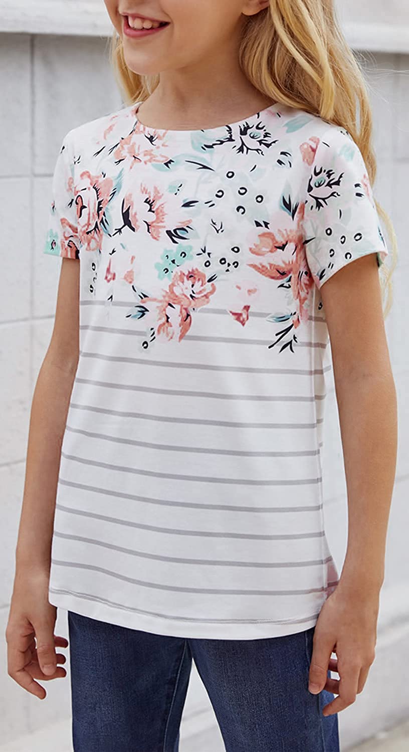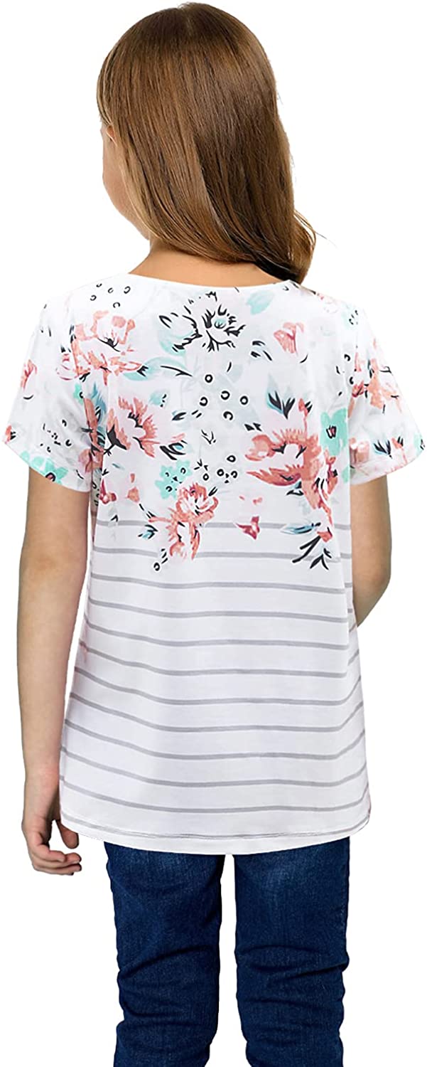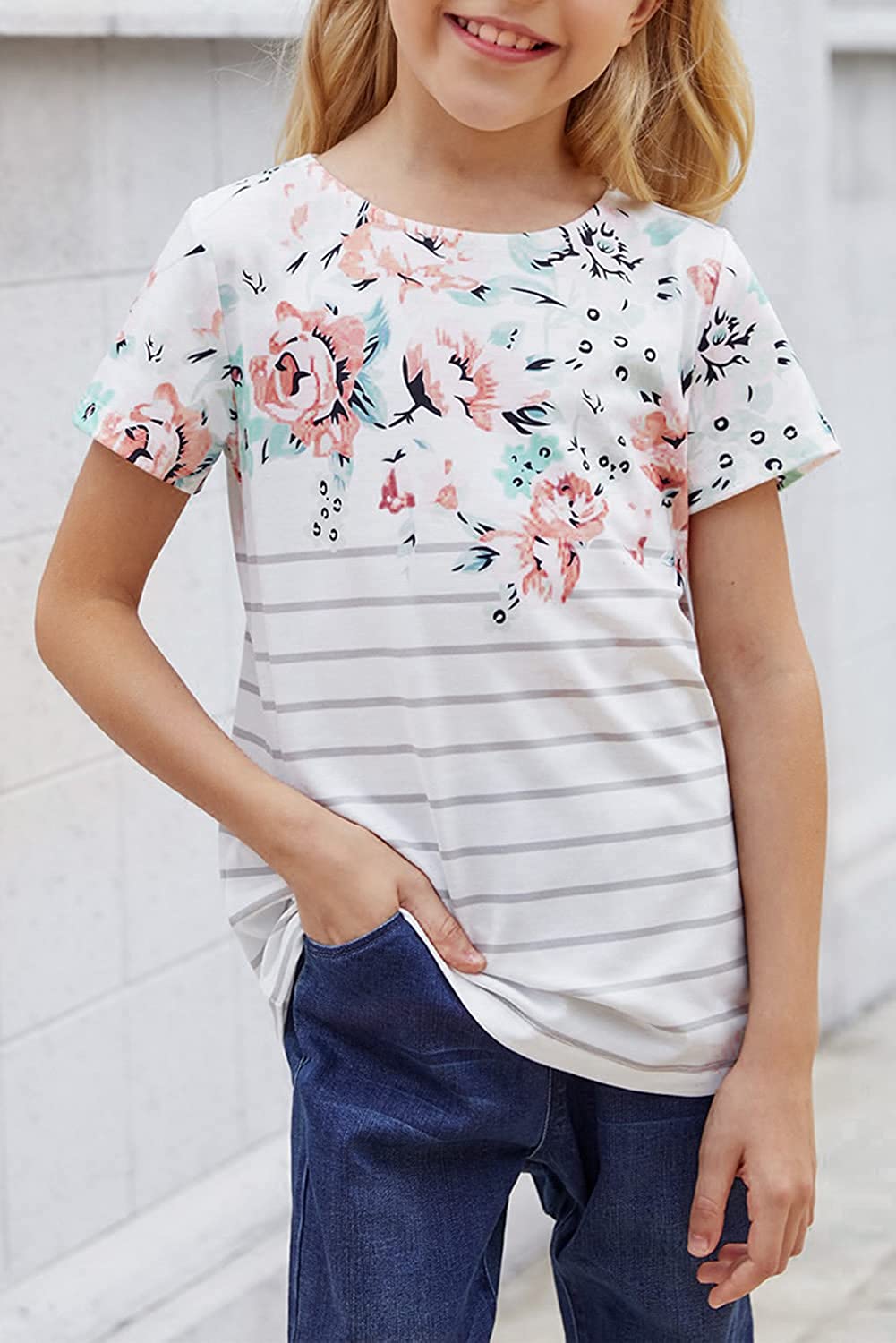 Stylish: Our girls tops feature a casual style with round neck and short sleeve, camo, leopard print, striped, pocket and color block will give this shirts a fashion look