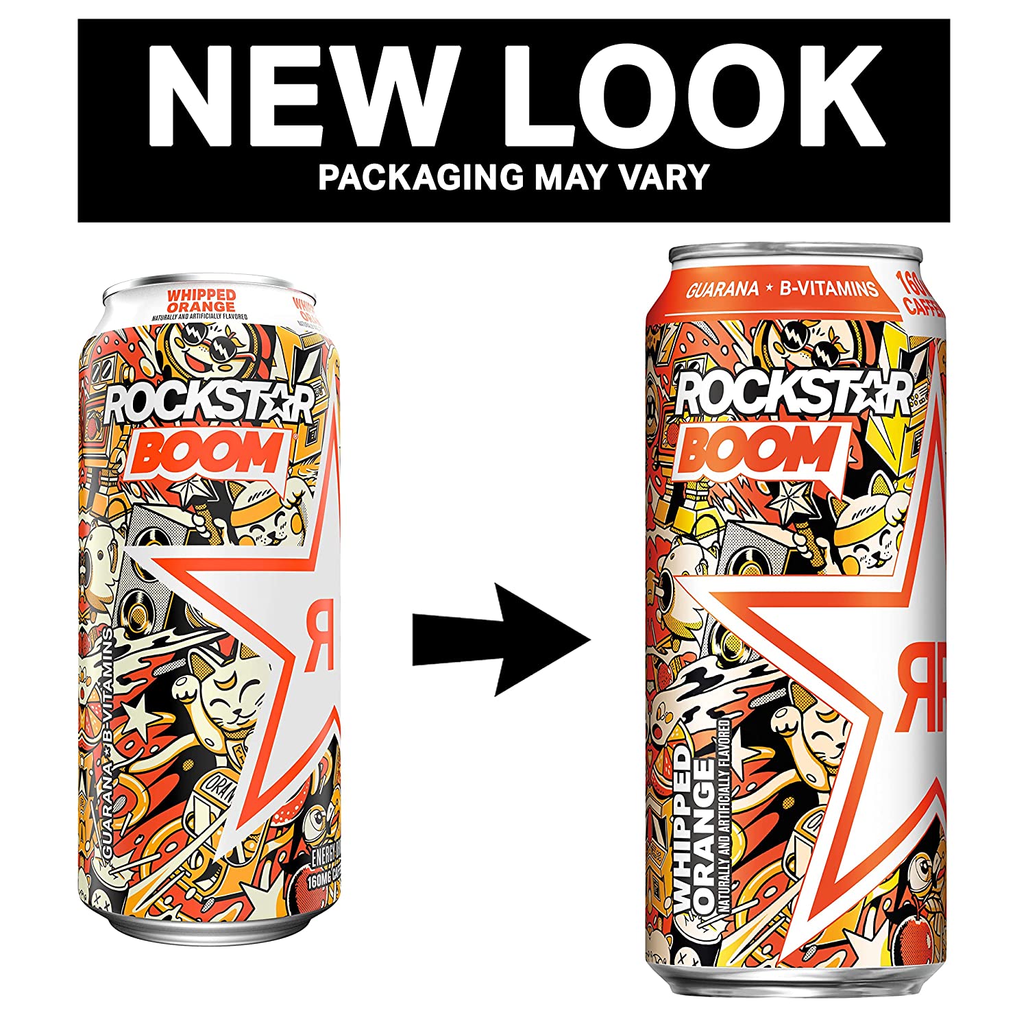 Includes 12 (16oz) cans of Rockstar Energy Drink, Boom Whipped Orange