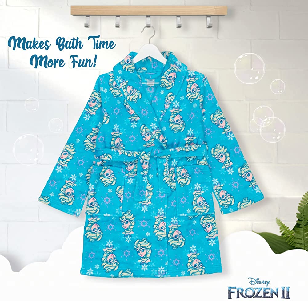 ENJOYABLE GIRLS’ BATHROBE: Our fun Disney “Frozen” plush robe is soft and loose-fitting and features charming, detailed graphics of Elsa. This cute and comfortable bathrobe for girls is available in sizes 2T–4T and 4–10.