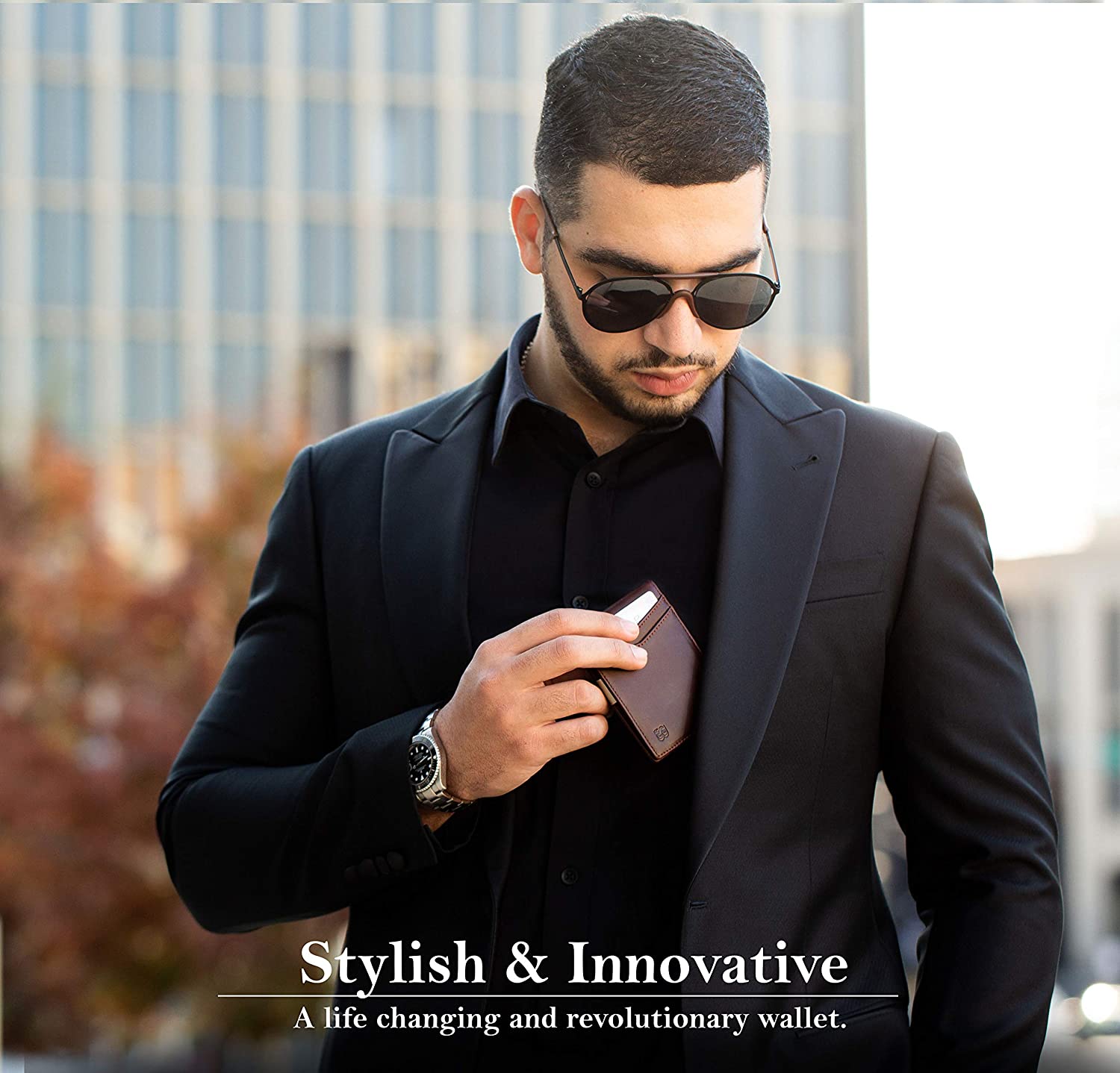 STYLISH & PRACTICAL – FUNCTIONALITY AT ITS BEST. Finally! A wallet that will meet your everyday needs and fits in your pocket without bulging. 2 convenient outside card slots made for your most used cards; Instantly have the cards you need to save time and energy. Photo ID slot located on the outside of the wallet; a smart solution to instantly access your ID. Innovative stainless-steel money clip securely holds up to 15 bills; quick payments and organization made easy!