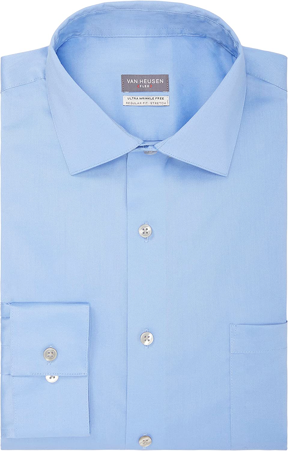 Van Heusen's new Ultra Wrinkle Free dress shirts are made from fabric that's been specially treated for advanced wrinkle resistance that allows for less ironing and even easier care at home. This essential style features a Flex collar that gives your neck a break by expanding up to a 1/2 inch, while all-over stretch ensures every move you make is a comfortable one.